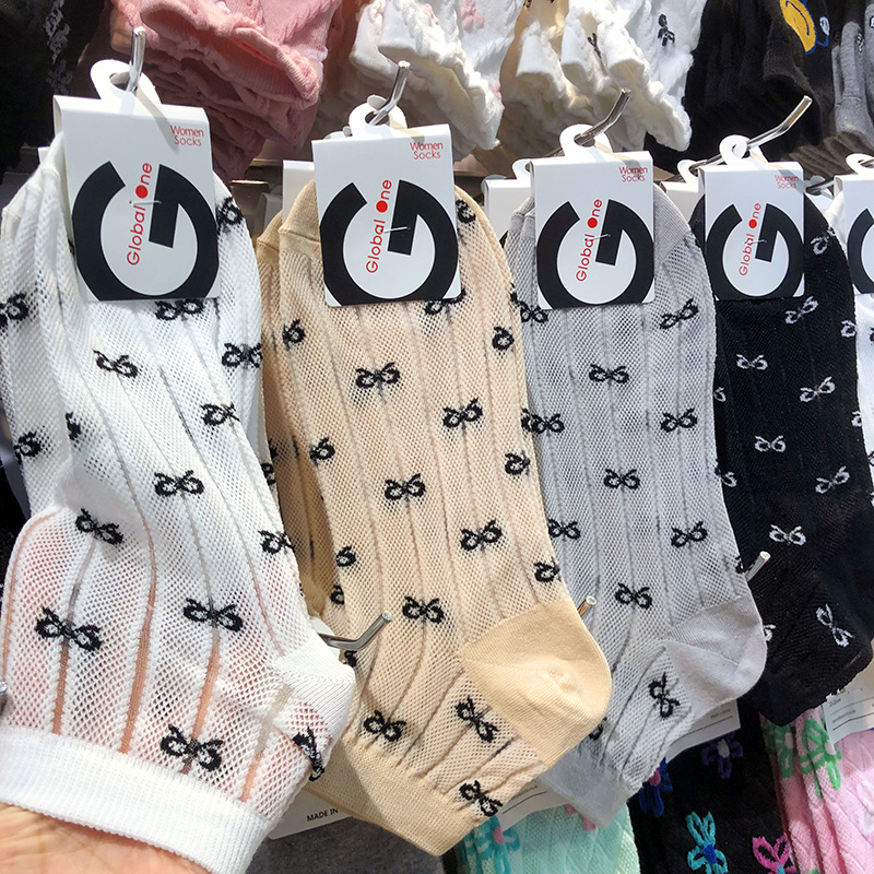 한국 수입 glalalane 중공 메쉬 양말 발레 스타일 보우 소녀 짧은 통기성 얇은면 양말스토어 가기