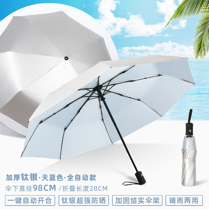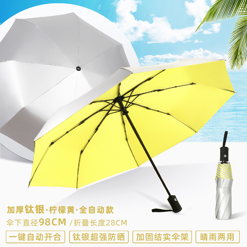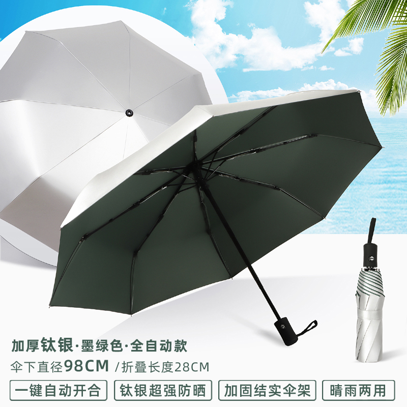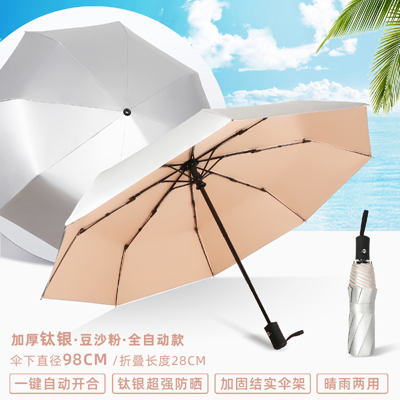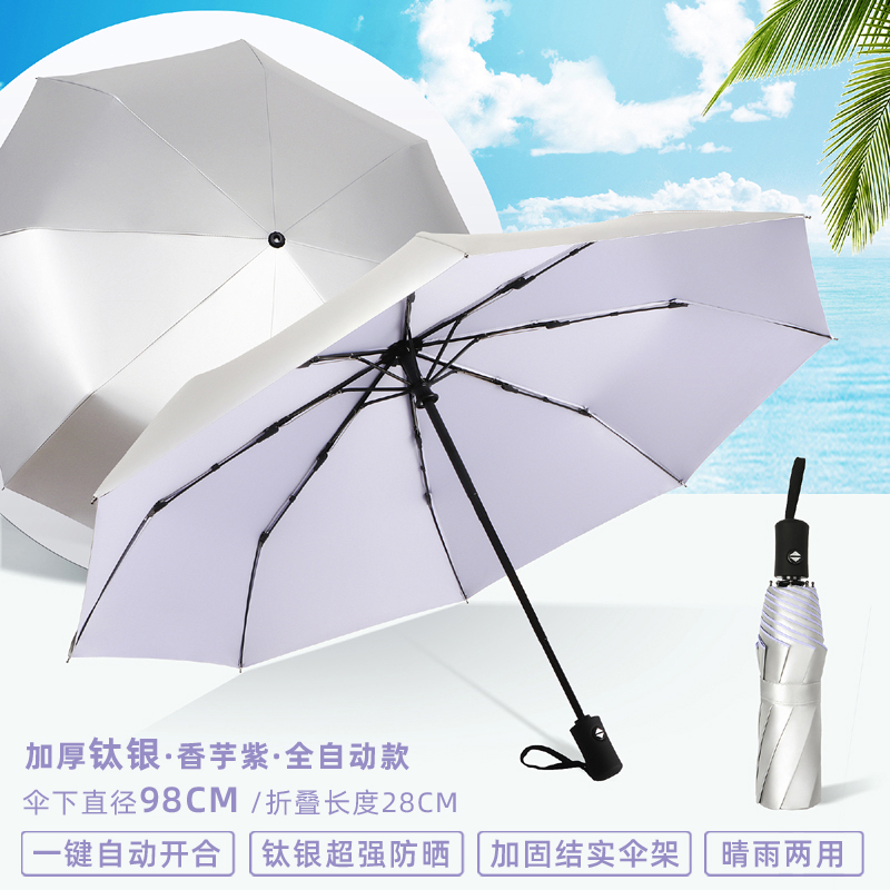 티타늄 실버 차양 우산 50% off 겹 이중 목적 완전 자동 자외선 차단 UV 소형 및 휴대용 남성과 여성