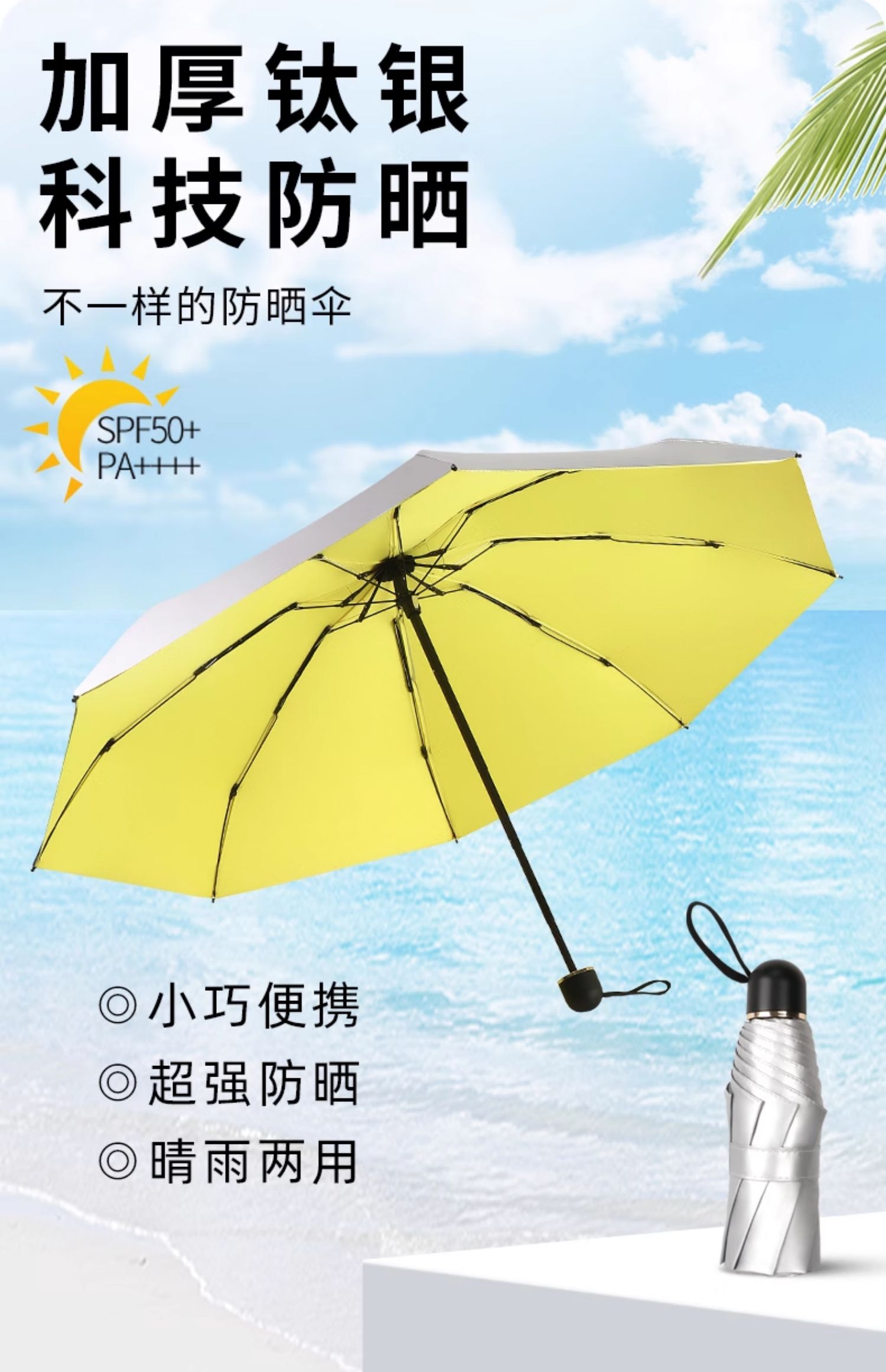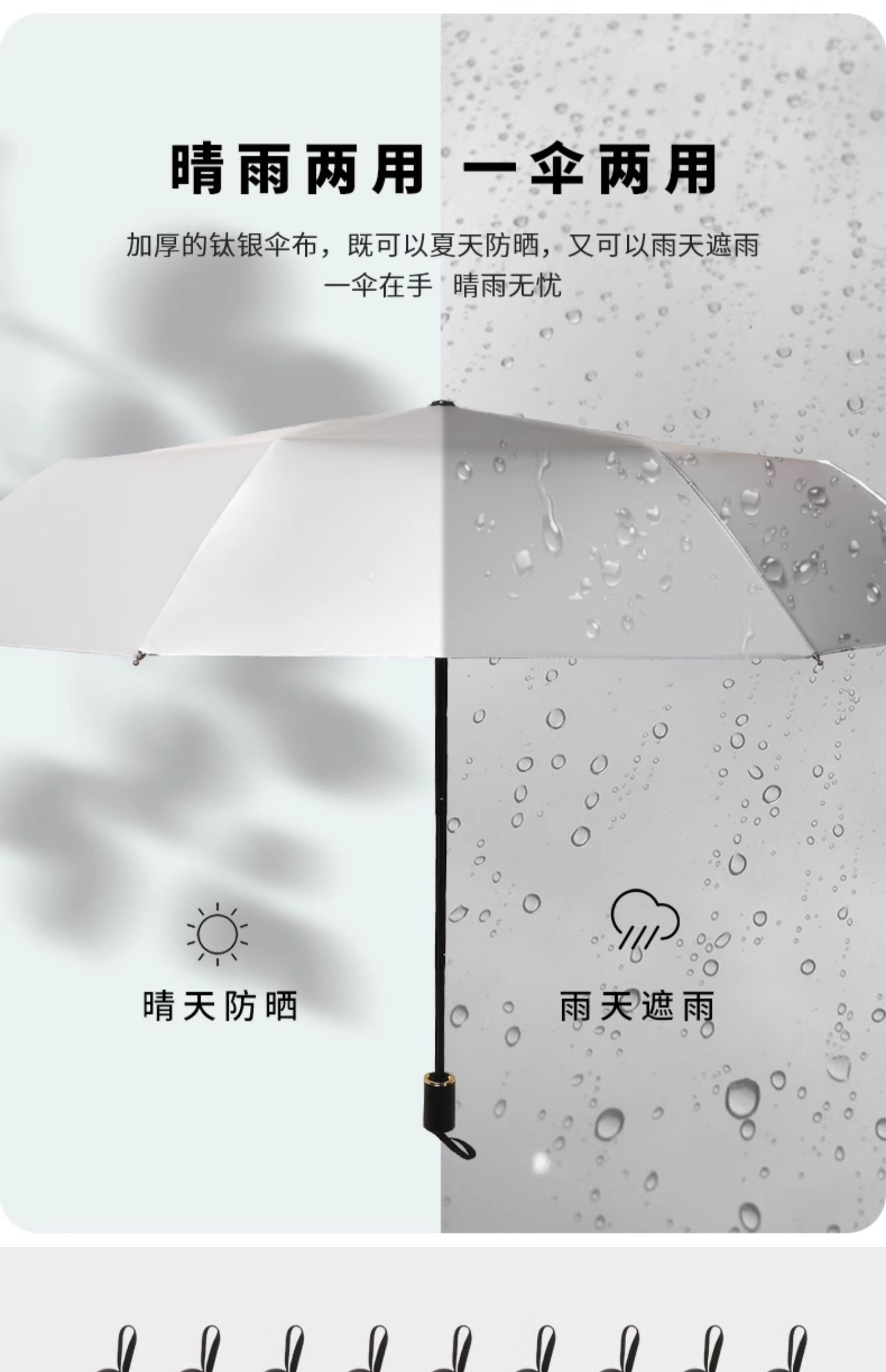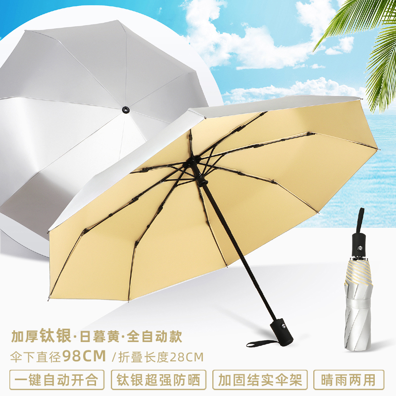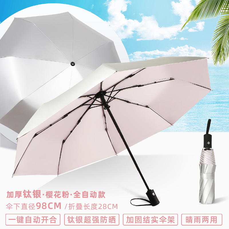 티타늄 실버 차양 우산 50% off 겹 이중 목적 완전 자동 자외선 차단 UV 소형 및 휴대용 남성과 여성