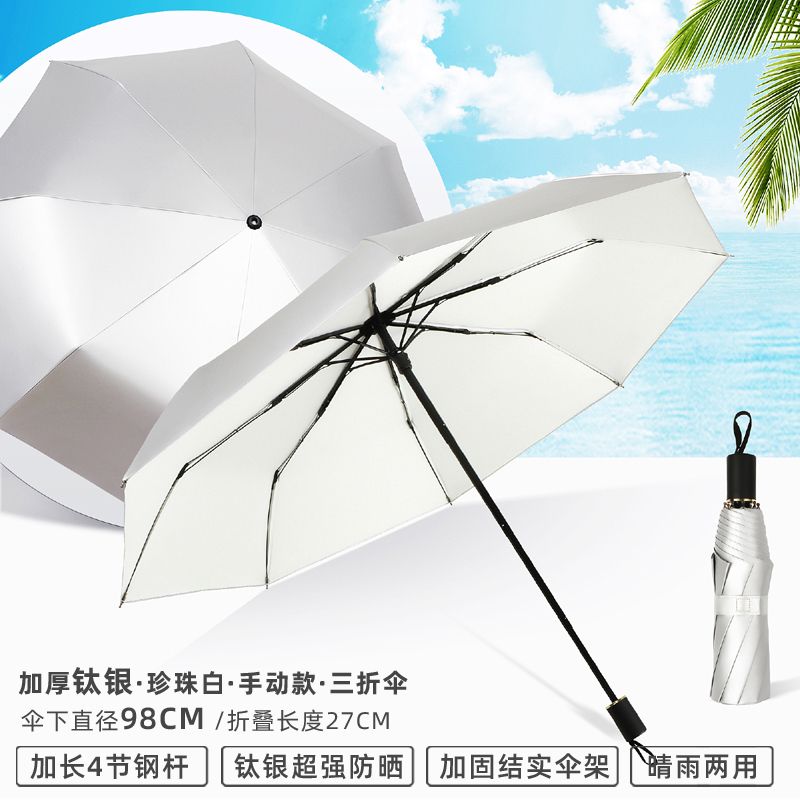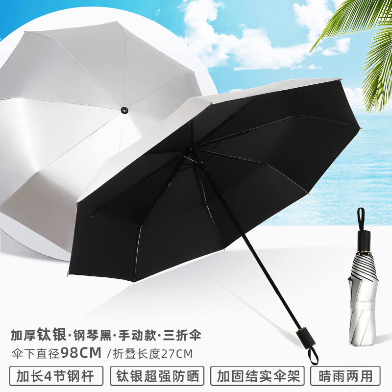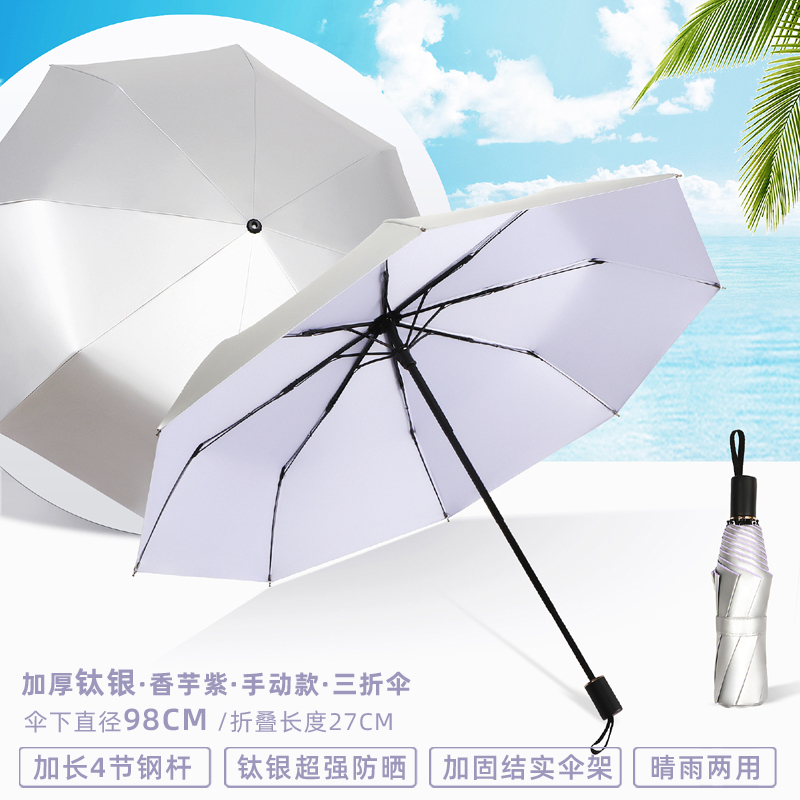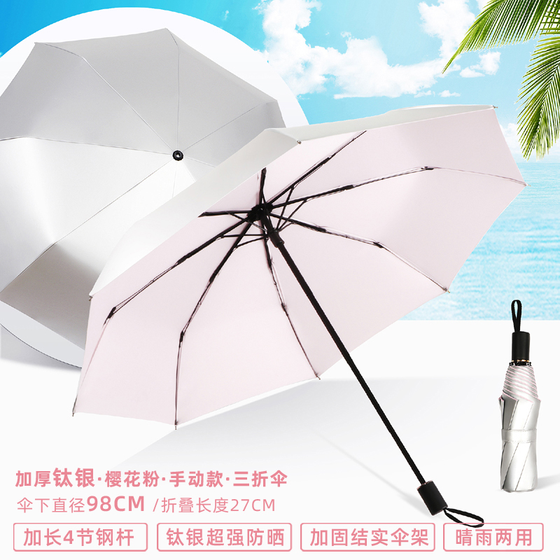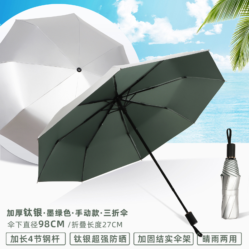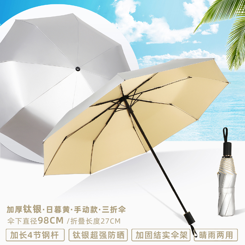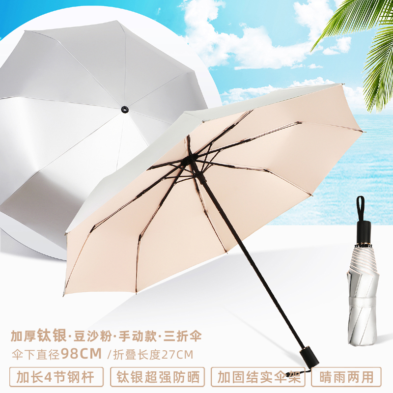 • 수동 모델 - 두꺼운 티타늄 은색 - 된장 분말 - 자외선 차단 강화 및 확장된 4단 폴 - 비가 오나 눈이 오나 사용 가능