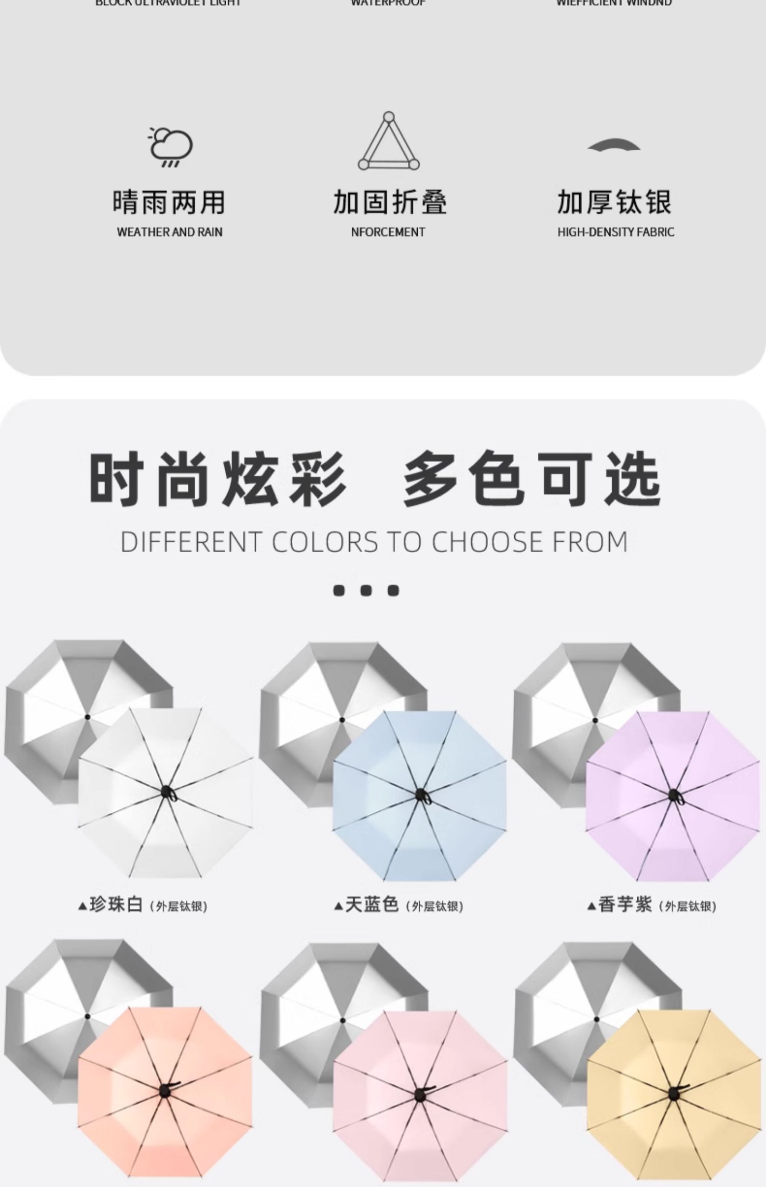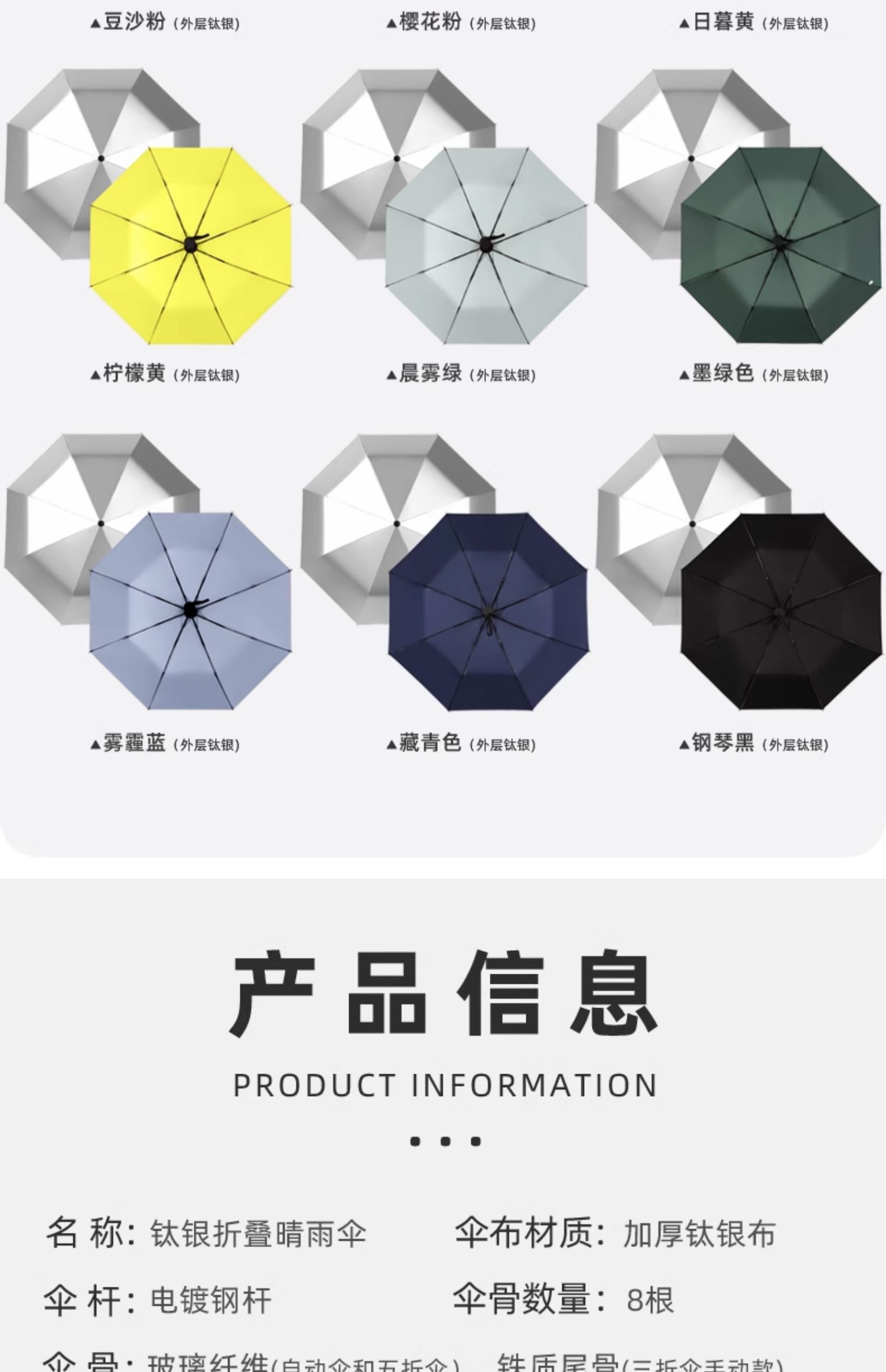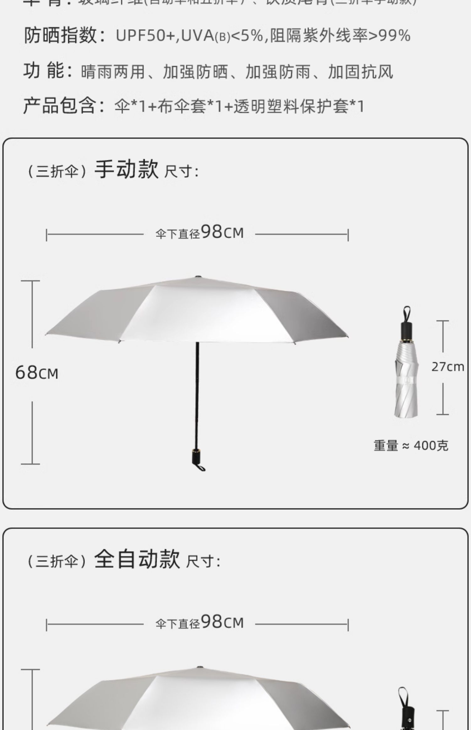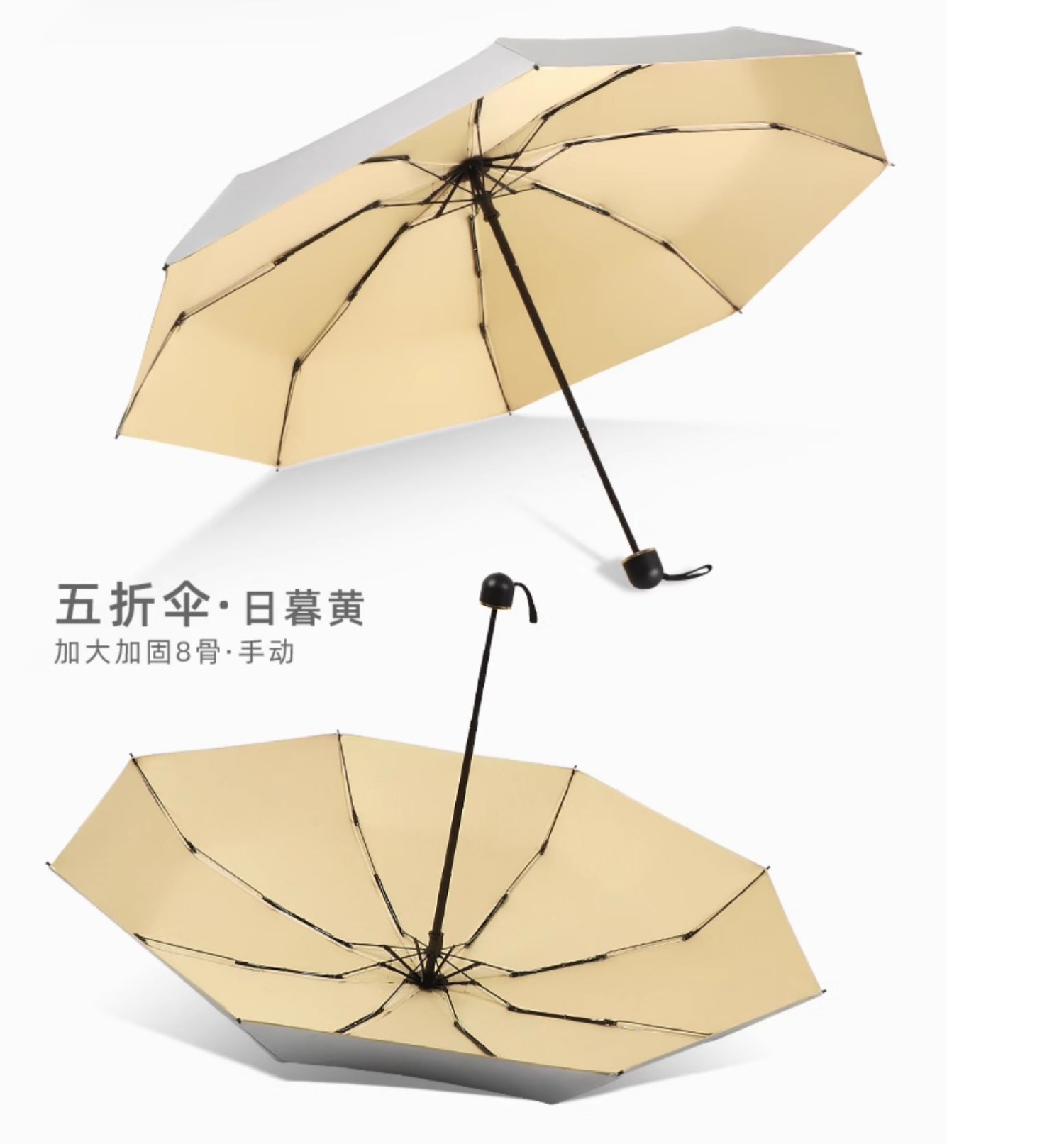 • 수동 모델 - 두꺼운 티타늄 은색 - 된장 분말 - 자외선 차단 강화 및 확장된 4단 폴 - 비가 오나 눈이 오나 사용 가능
