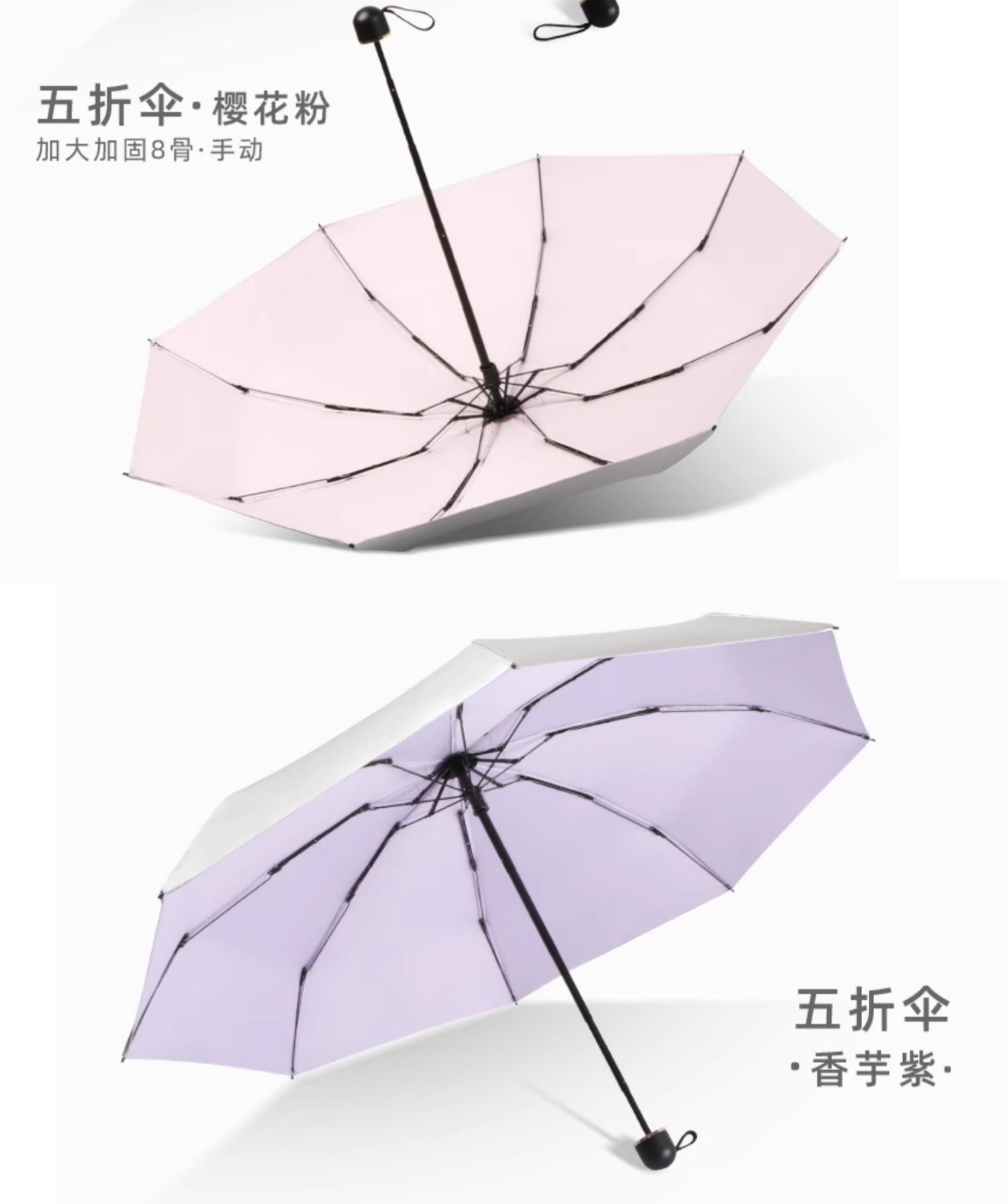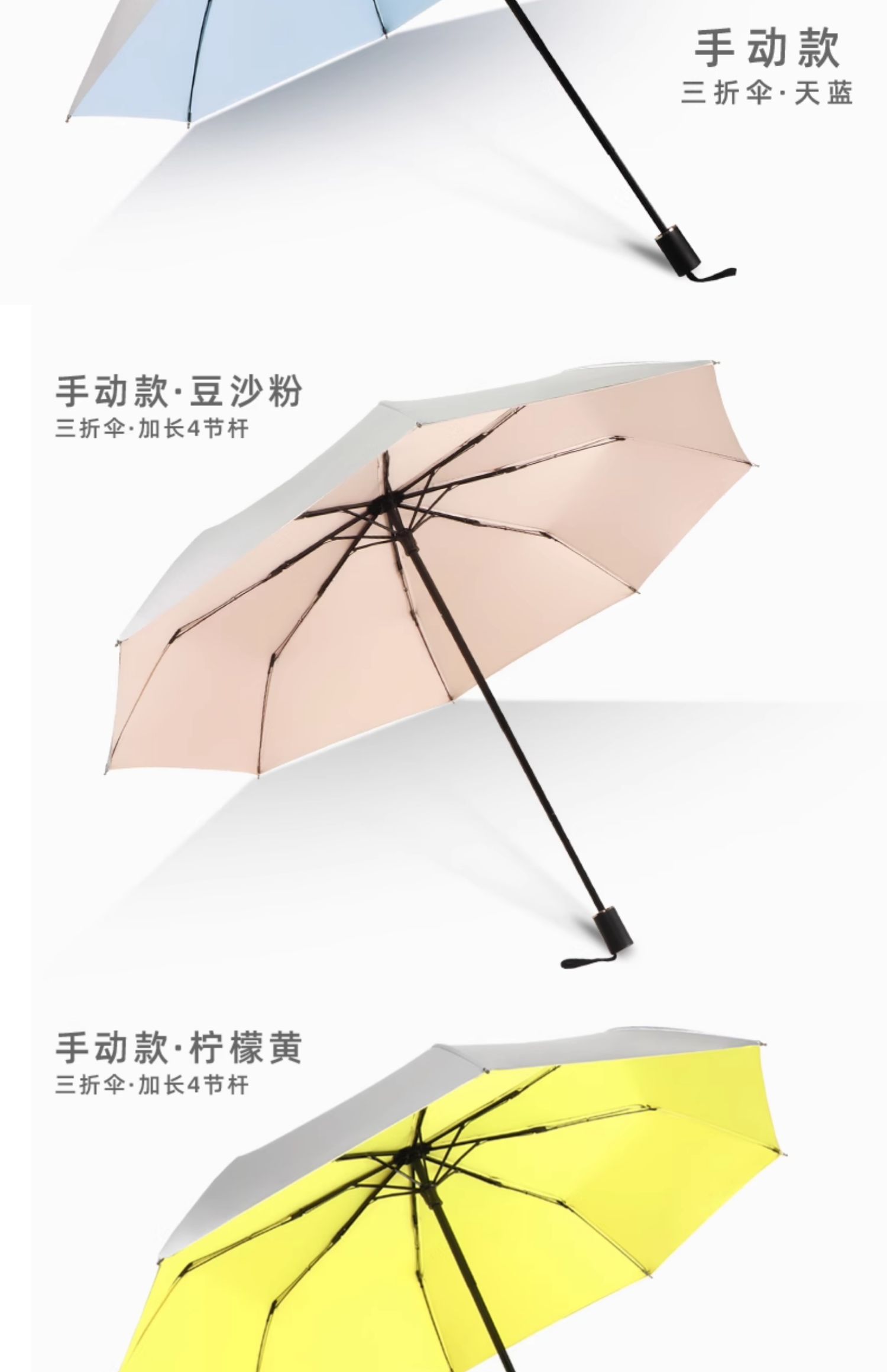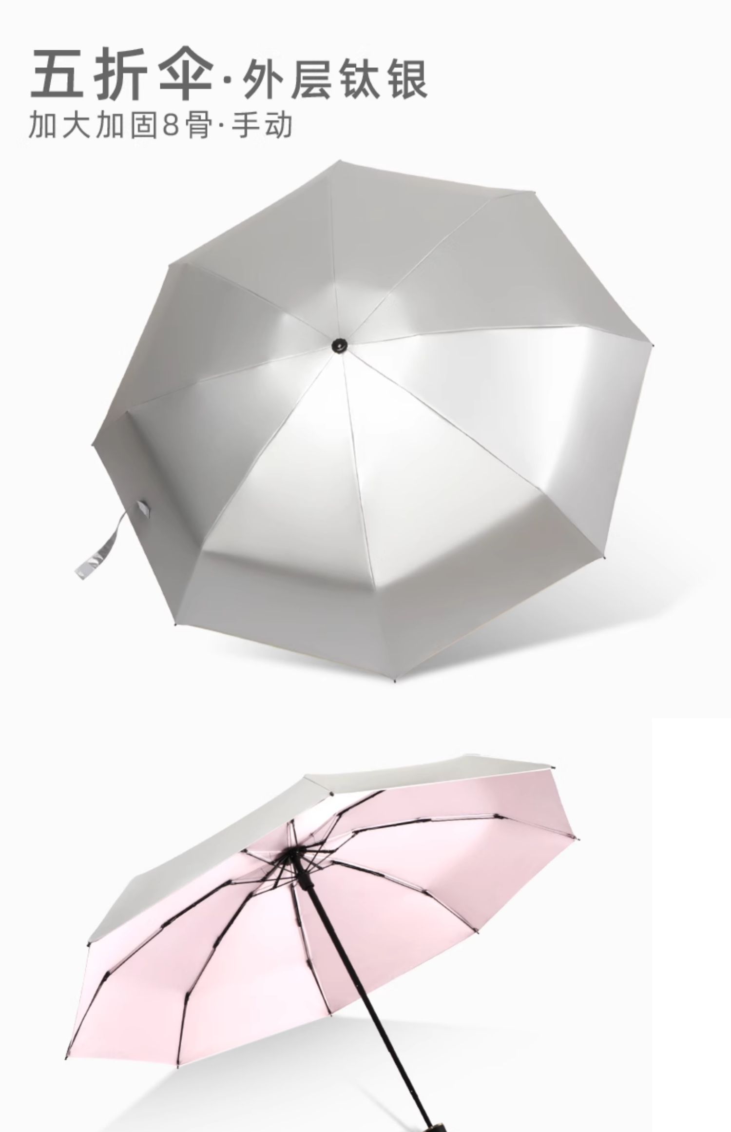 • 수동 모델 - 두꺼운 티타늄 실버 - 벚꽃 핑크 - 자외선 차단 강화 및 확장된 4단 폴 - 비가 오나 눈이 오나 사용 가능
