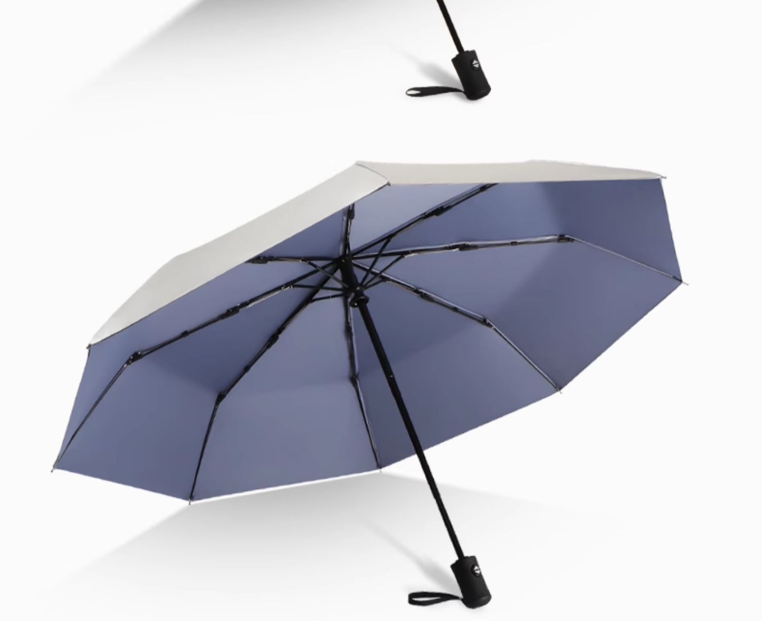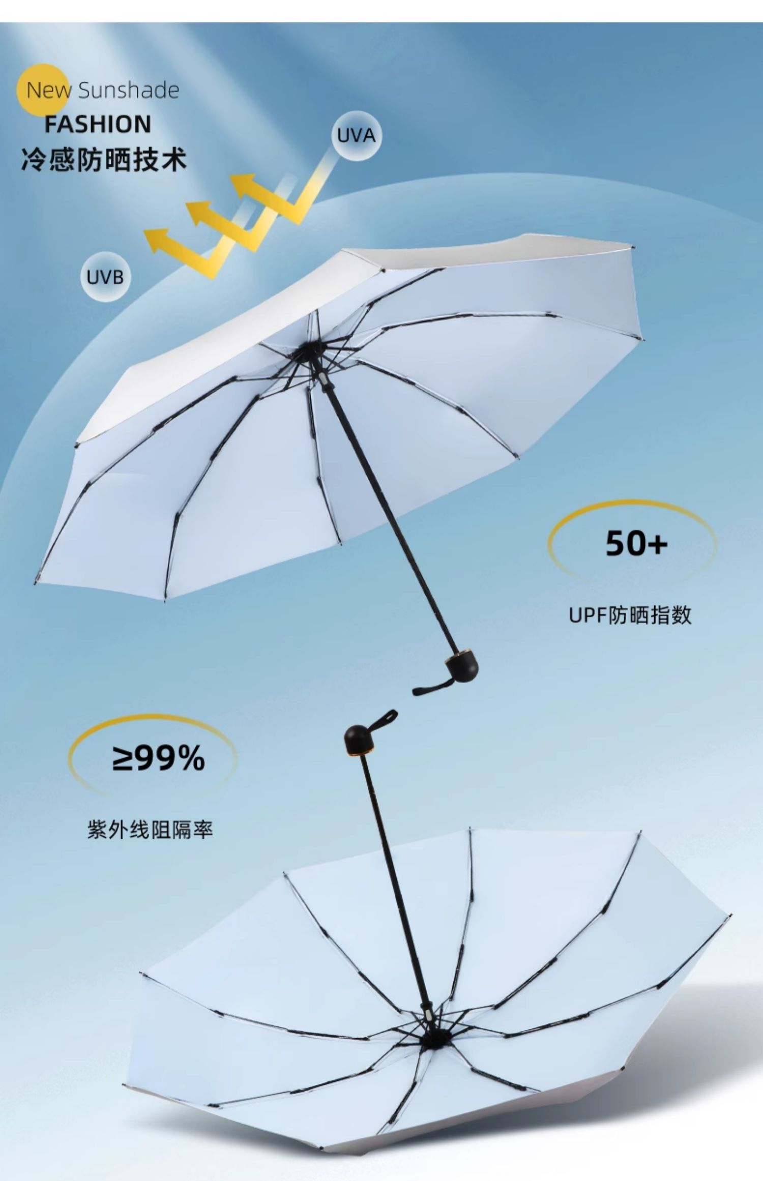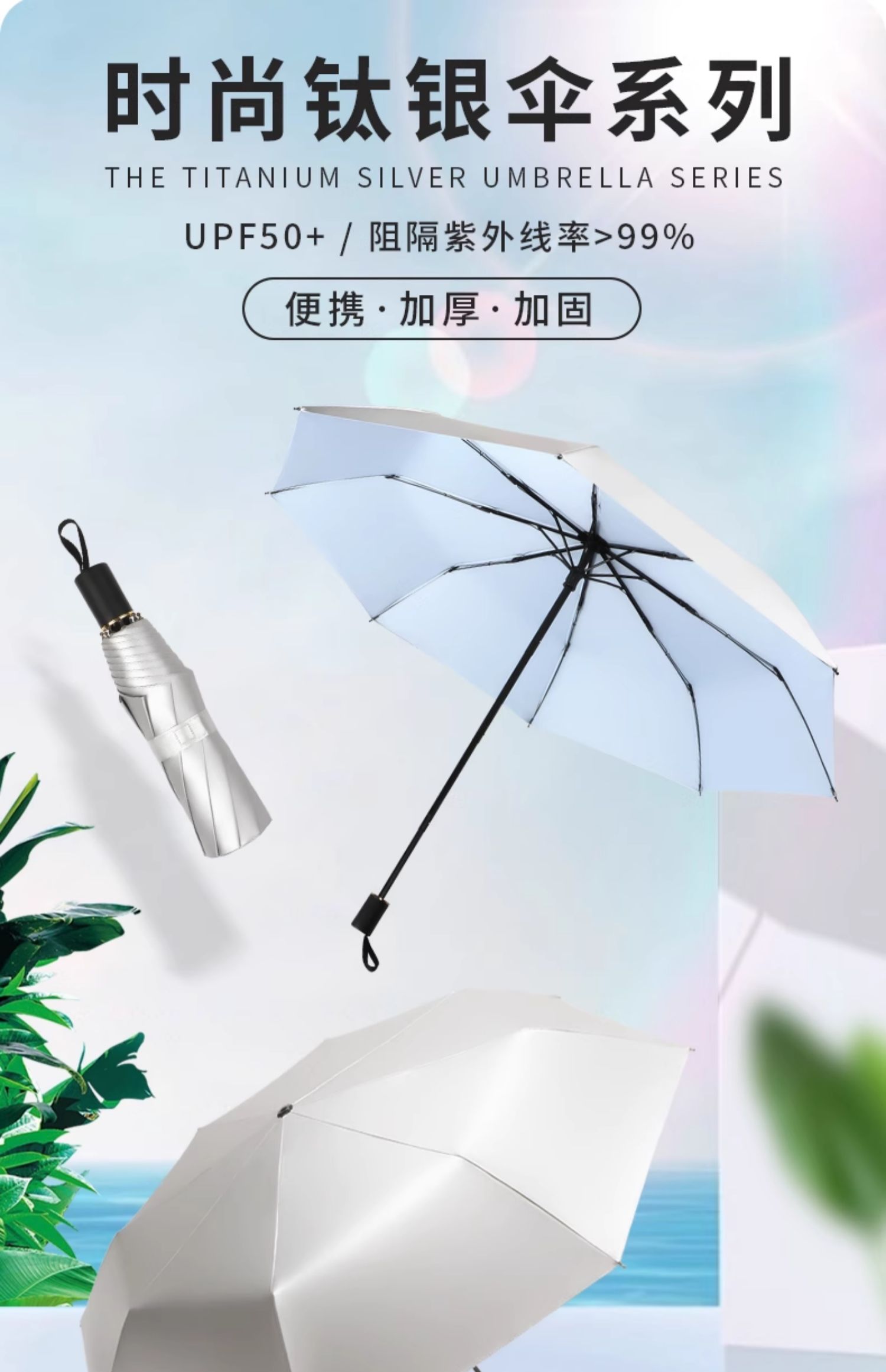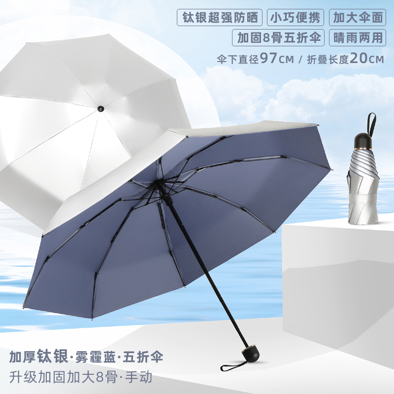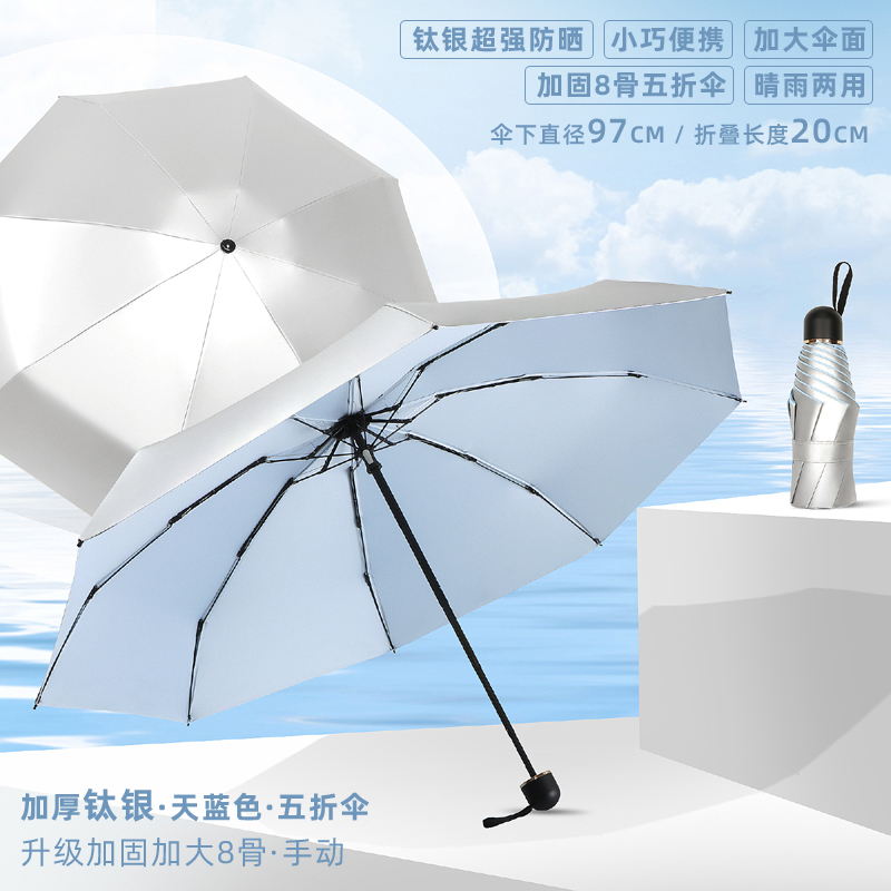 • 50% off 우산 - 강화 및 강화된 8개의 갈비뼈로 업그레이드됨 - 두꺼운 티타늄 실버 - 하늘색 - 자외선 차단 기능, 컴팩트하고 휴대 가능 - 비가 오나 눈이 오나 사용 가능