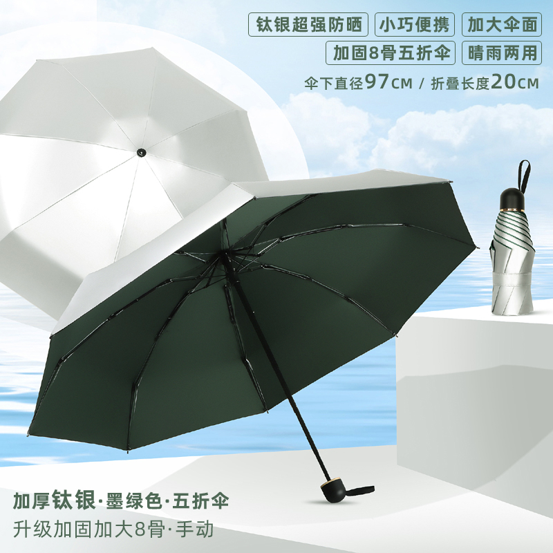 • 50% off 우산 - 강화 및 강화된 8개의 갈비뼈로 업그레이드됨 - 두꺼운 티타늄 실버 - 짙은 녹색 - 자외선 차단 기능, 컴팩트하고 휴대 가능 - 비가 오나 눈이 오나 사용 가능