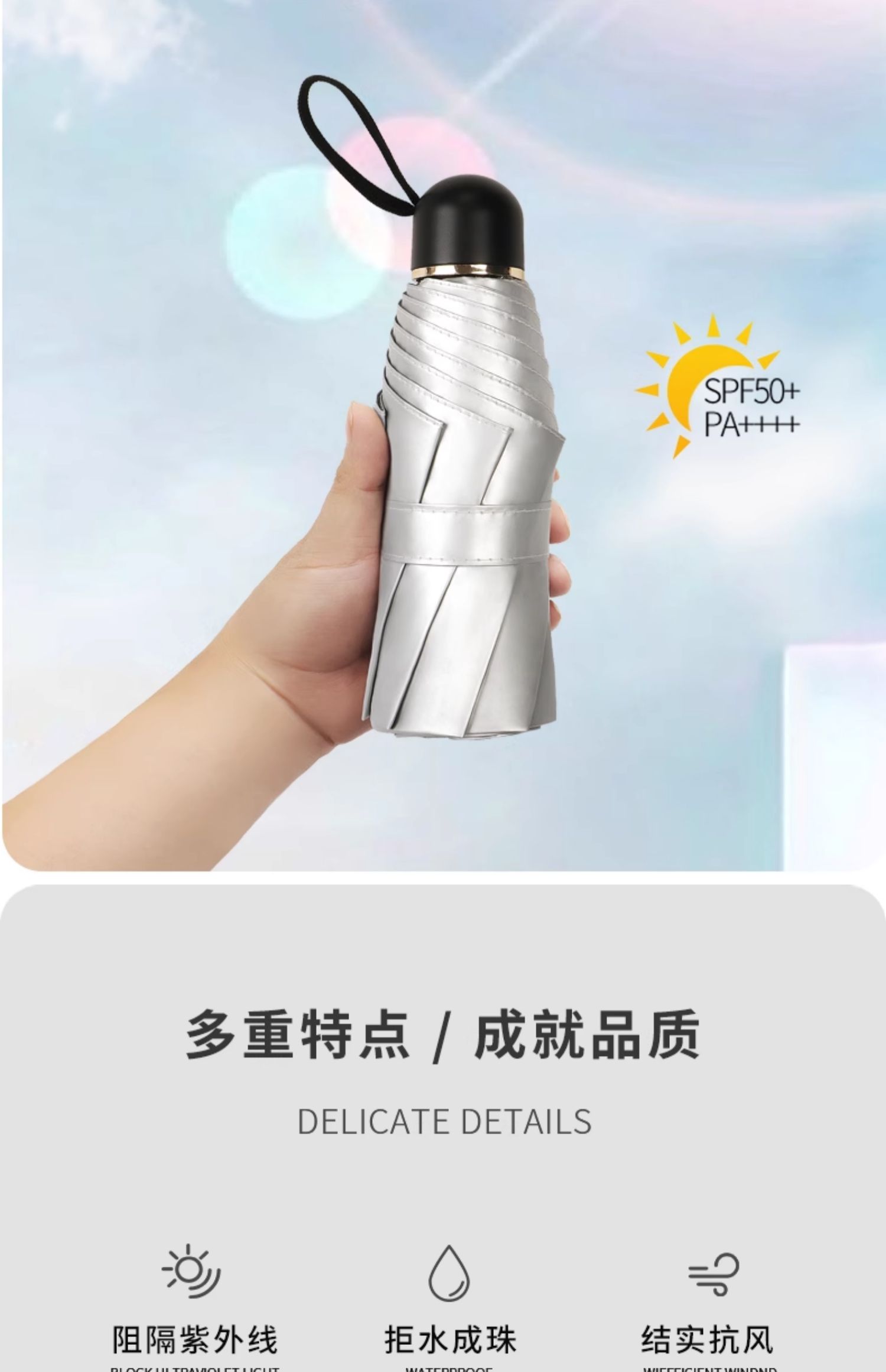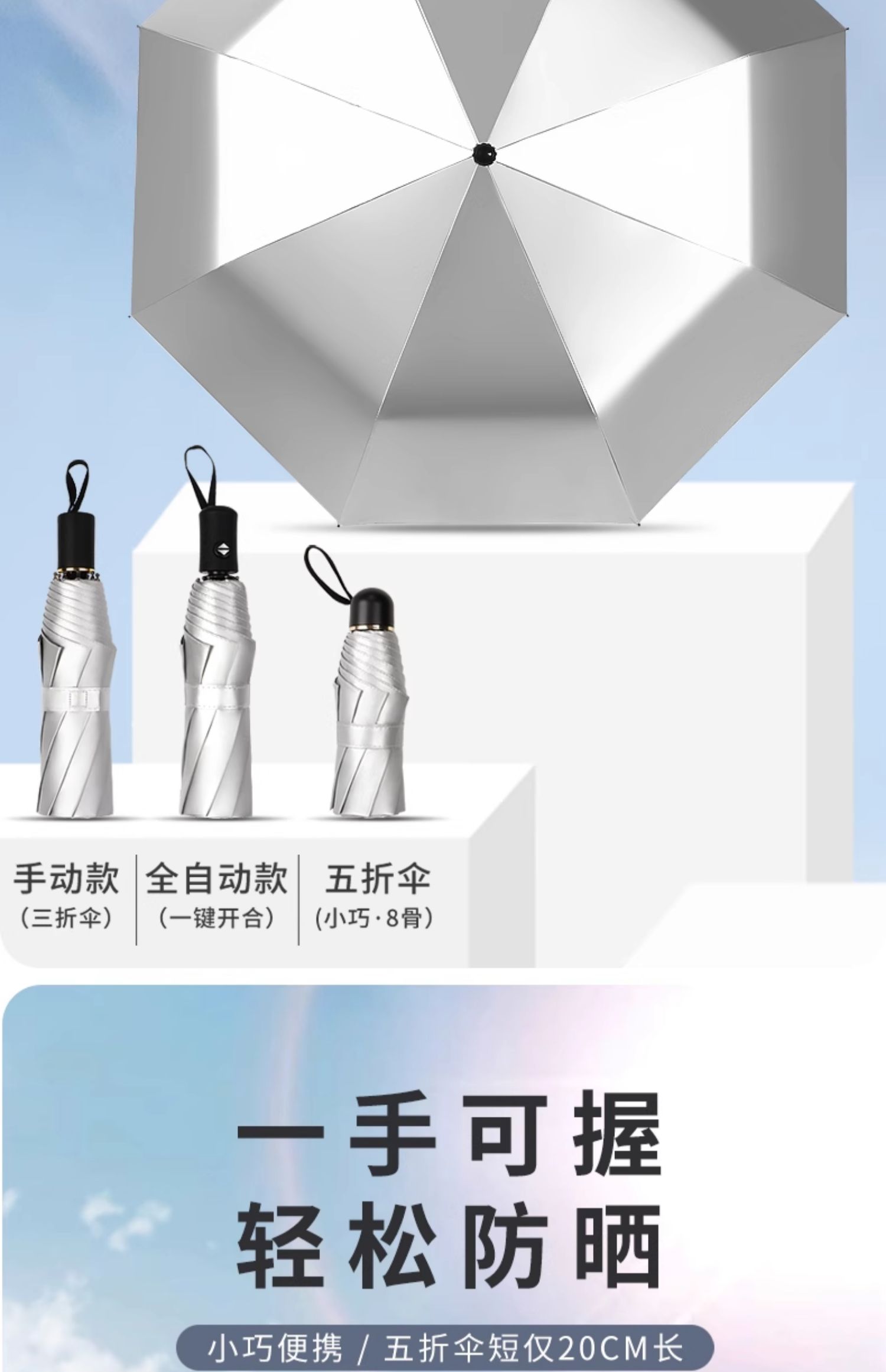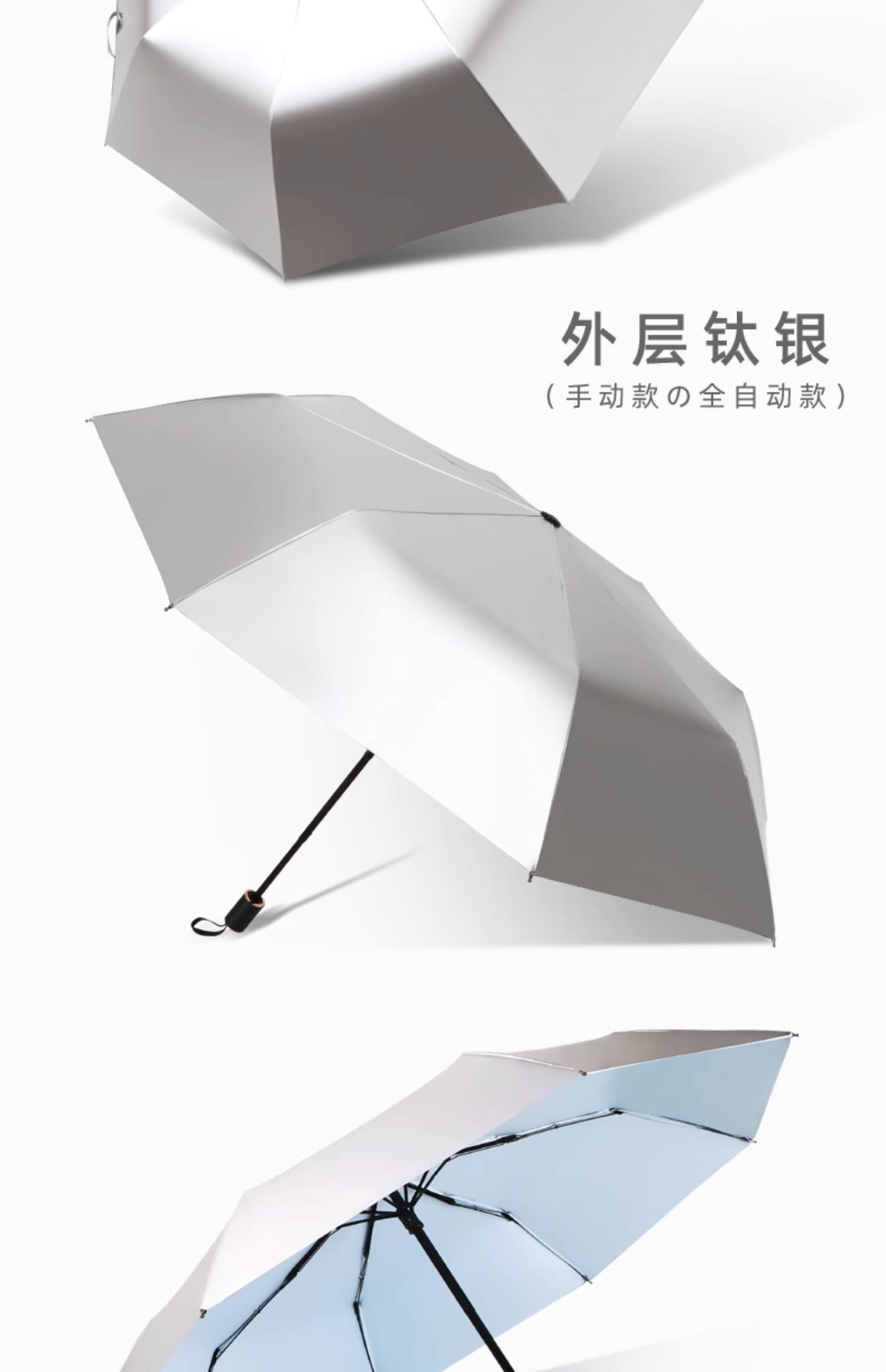 • 수동 모델 - 두꺼운 티타늄 실버 - 헤이즈 블루 - 자외선 차단 강화 및 확장된 4섹션 폴 - 비가 오나 눈이 오나 사용 가능