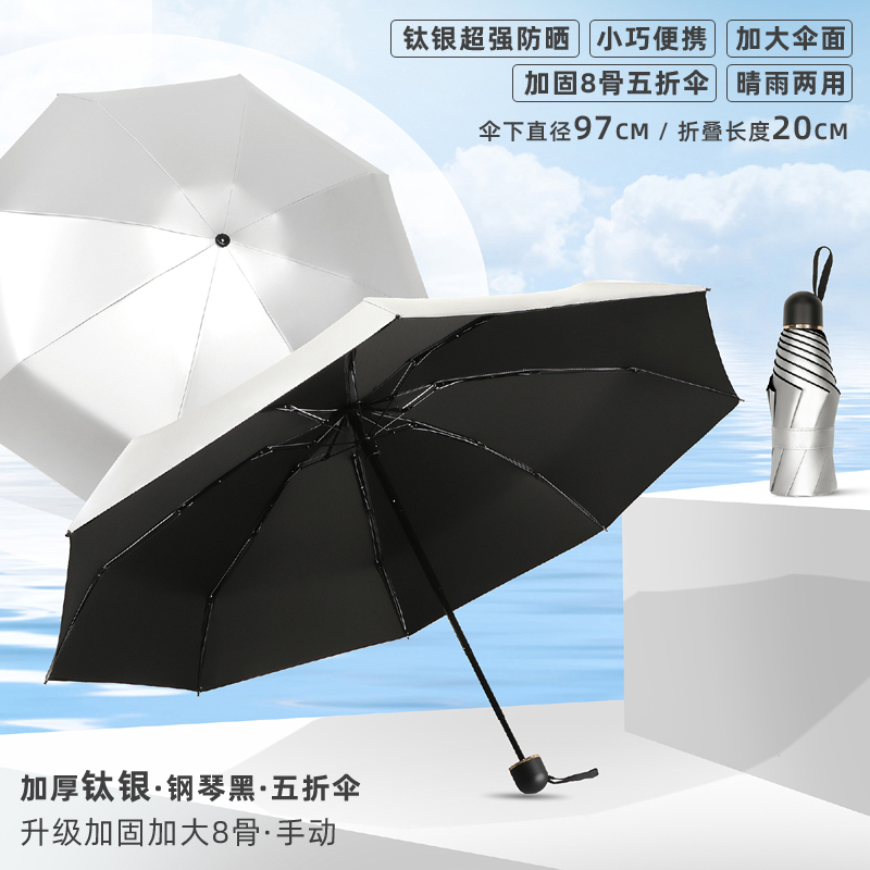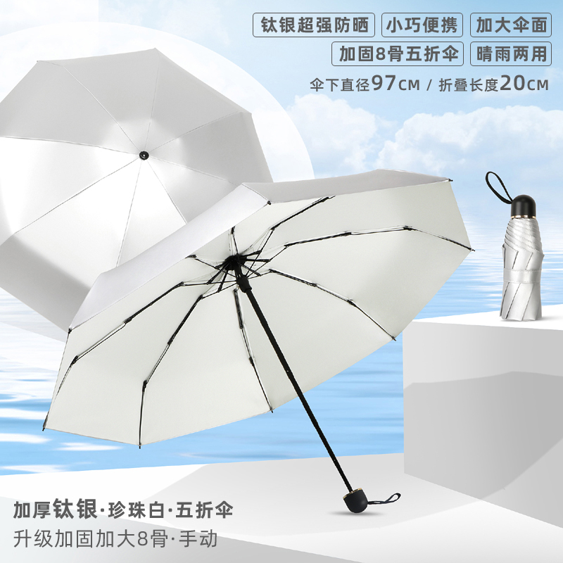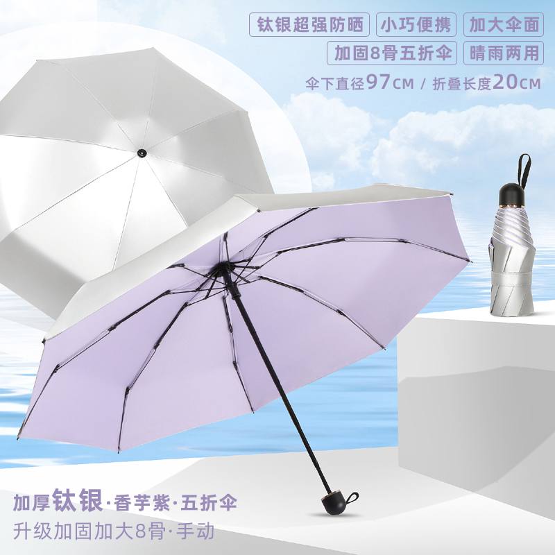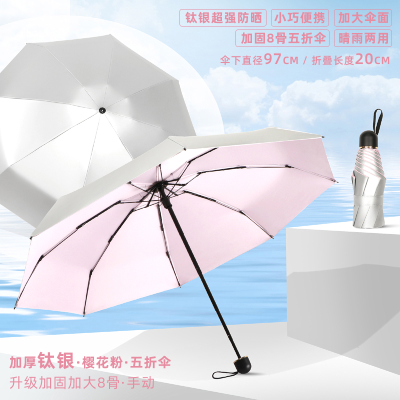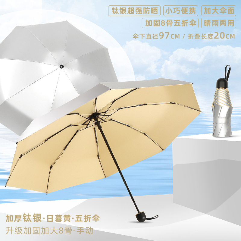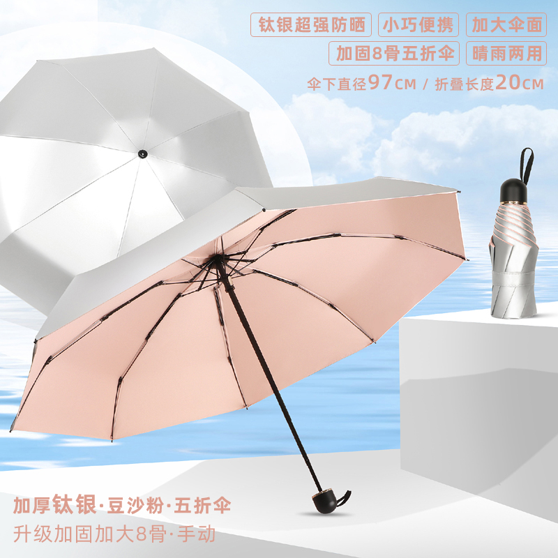• 50% off 우산 - 강화 및 강화를 위해 업그레이드된 8개의 갈비뼈 - 두꺼운 티타늄 은색 - 된장 분말 - 자외선 차단제, 컴팩트하고 휴대 가능 - 비가 오나 눈이 오나 사용 가능