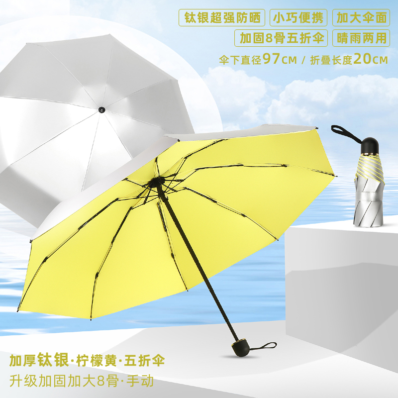 • 50% off 우산 - 강화 및 강화를 위해 업그레이드된 8개의 갈비뼈 - 두꺼운 티타늄 실버 - 레몬 옐로우 - 자외선 차단제, 컴팩트하고 휴대 가능 - 비가 오나 눈이 오나 사용 가능
