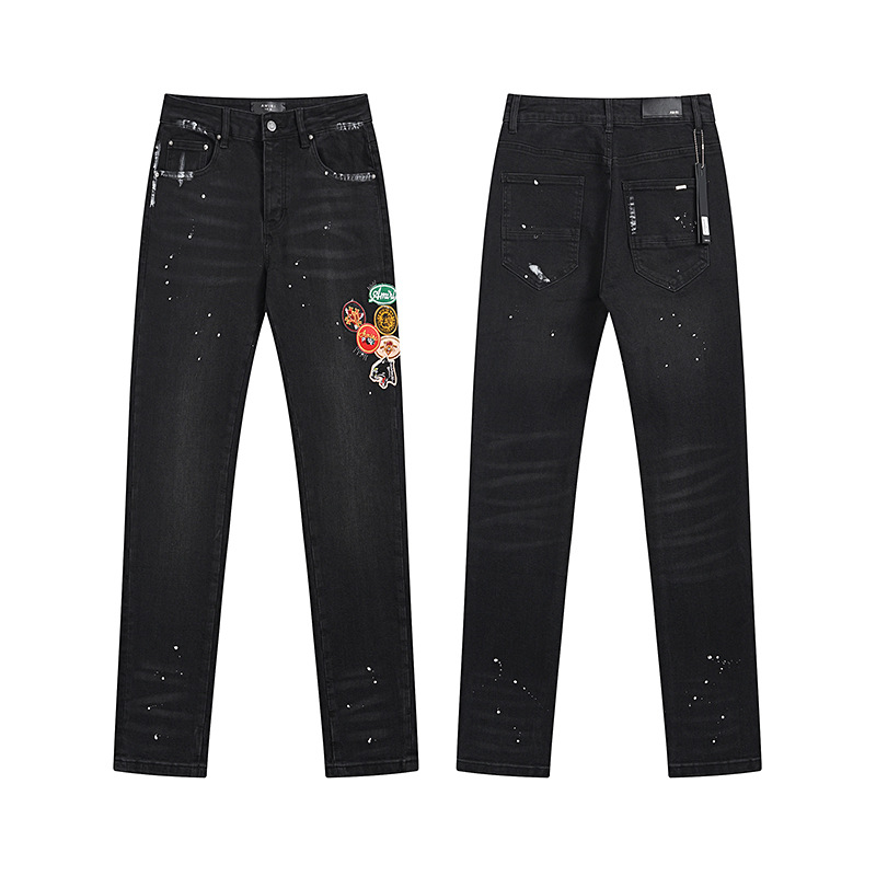 퍼플 브랜드의 새로운 스플래시 잉크 프린트 뷰티 트렌디 하이 스트리트 레트로 찢어진 캐주얼 트렌디 남성 및 여성 데님 바지