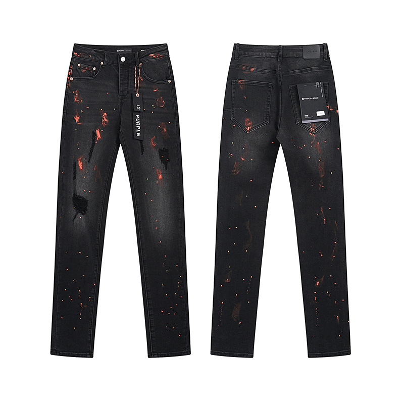 퍼플 브랜드의 새로운 스플래시 잉크 프린트 뷰티 트렌디 하이 스트리트 레트로 찢어진 캐주얼 트렌디 남성 및 여성 데님 바지스토어 가기