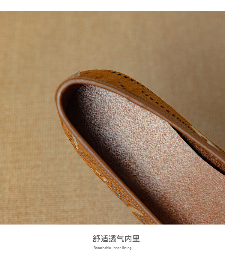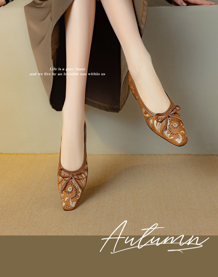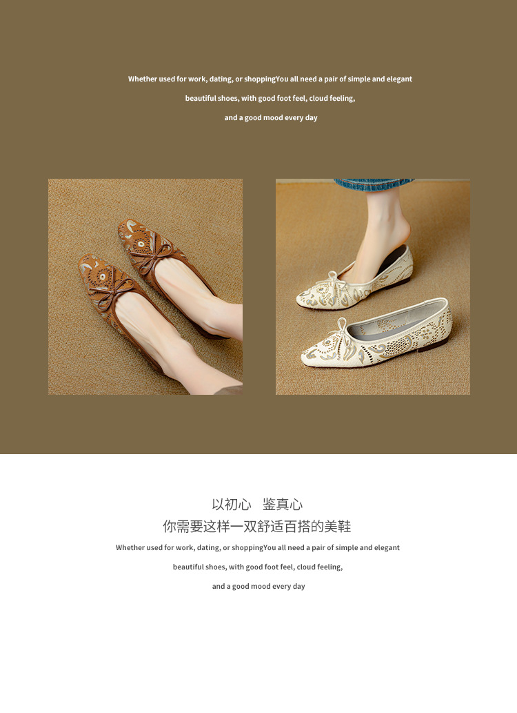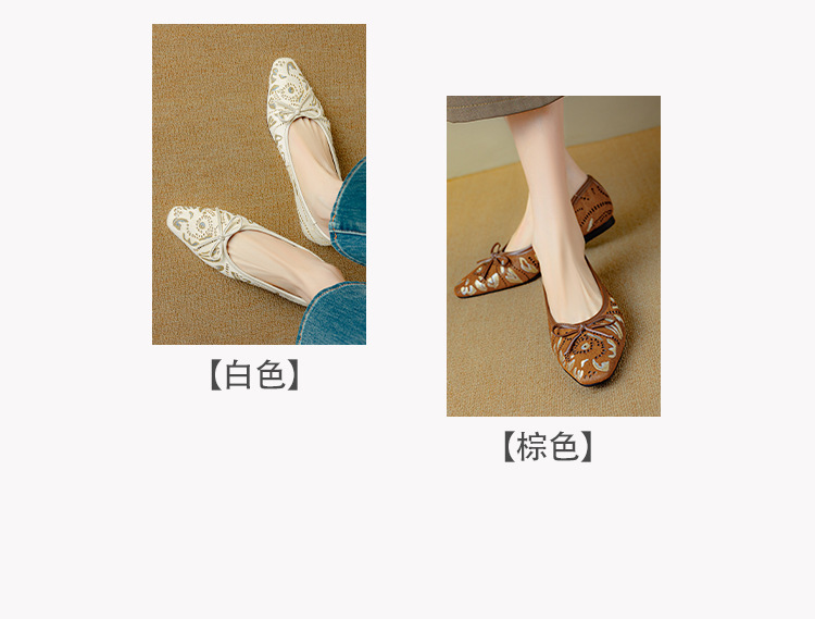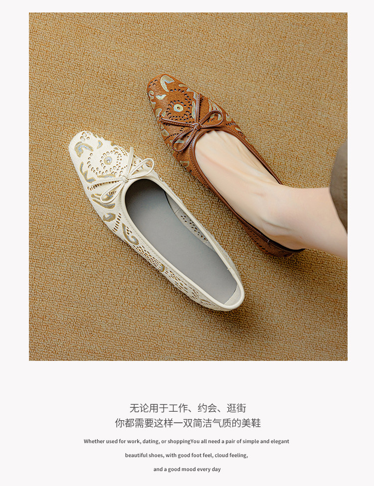 레트로 스퀘어 토 말털 조각 여성용 플랫 슈즈, 리본매듭 플랫 슈즈, 중공 에스닉 스타일 통근용 소형 가죽 신발스토어 가기