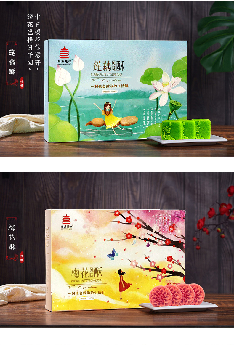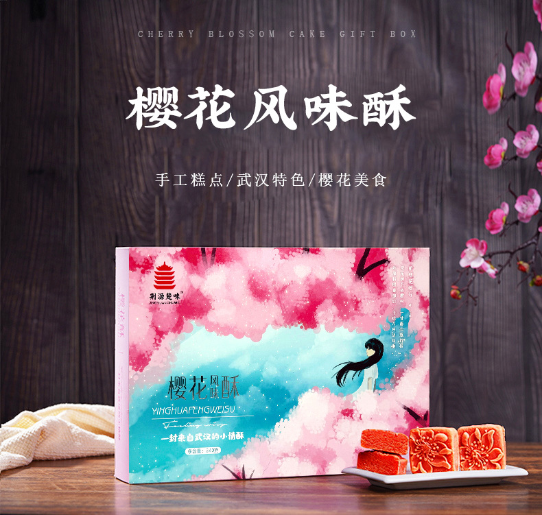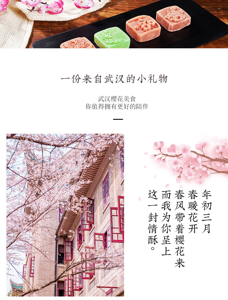 신선한 우한 특산품 벚꽃 크리스피 꽃 케이크 스낵 스낵 얼음 껍질 전통 중국 과자 매화 꽃 크리스피
