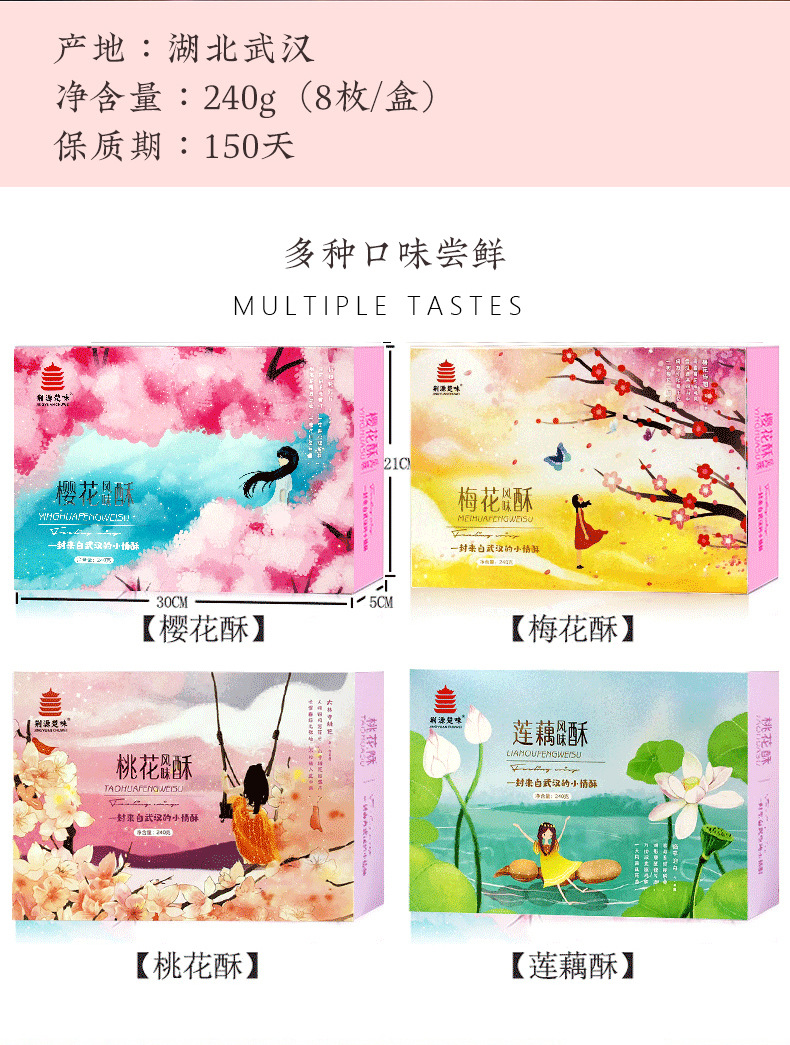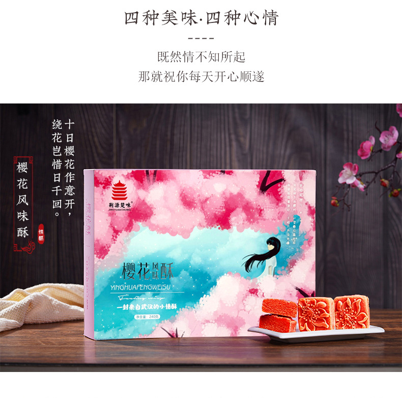 신선한 우한 특산품 벚꽃 크리스피 꽃 케이크 스낵 스낵 얼음 껍질 전통 중국 과자 매화 꽃 크리스피스토어 가기