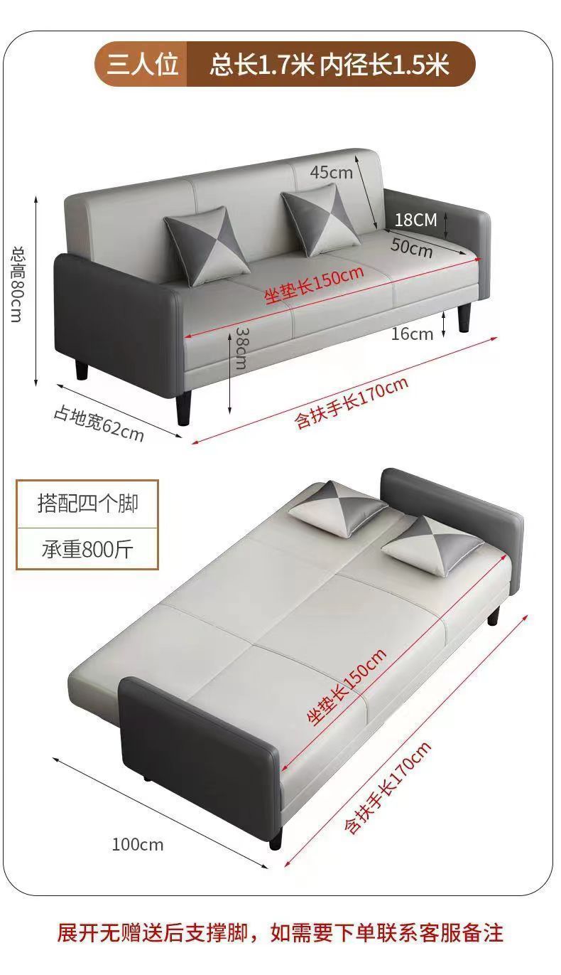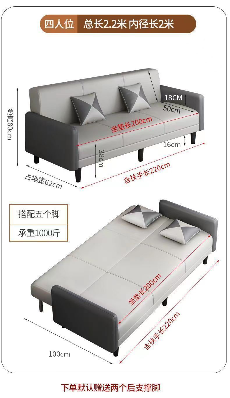 접이식 소파 베드 이중 목적 소형 다기능 가정용 내구성 고양이 발톱 가죽 소파 일반 간단한 방 재고 있음