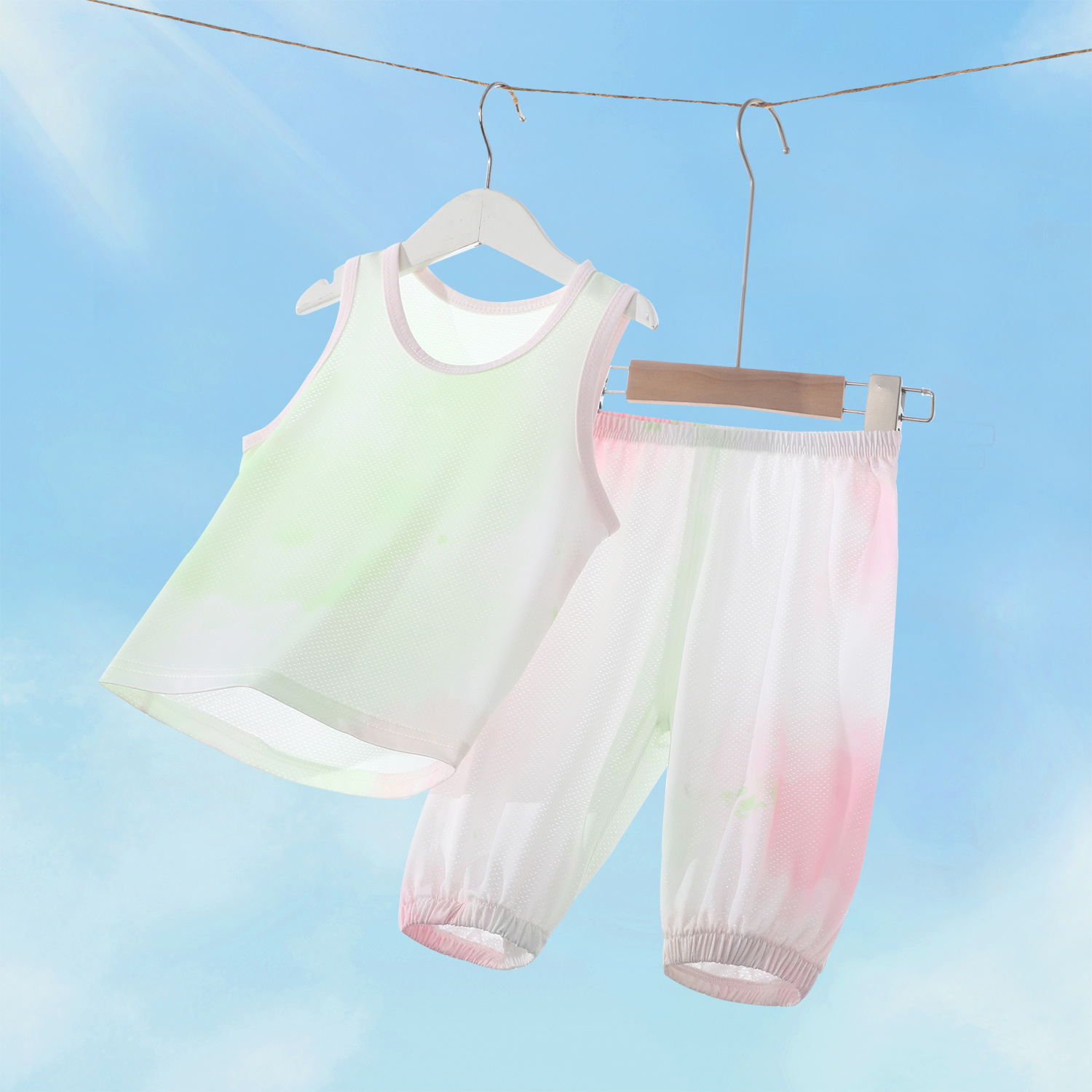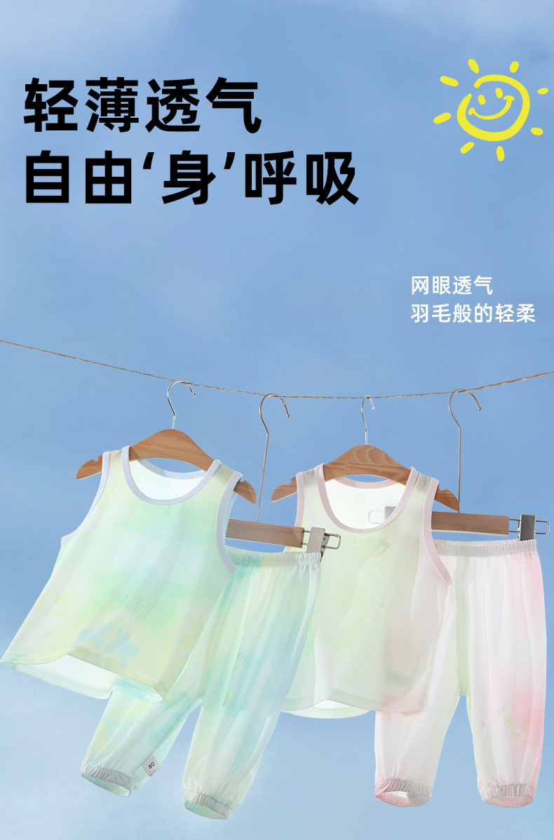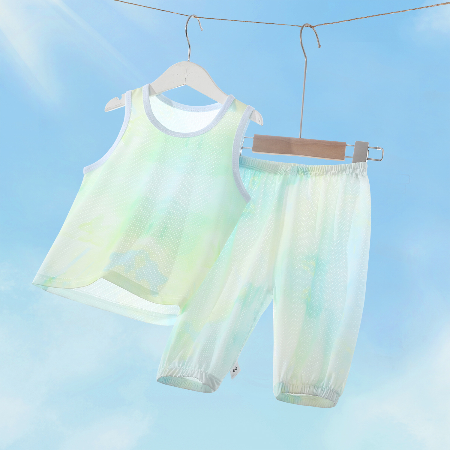 어린이 조끼 정장 랜턴 카프리 바지 아기 통기성 메쉬 여름 얇은 얼음 실크 민소매 바닥 셔츠 정장