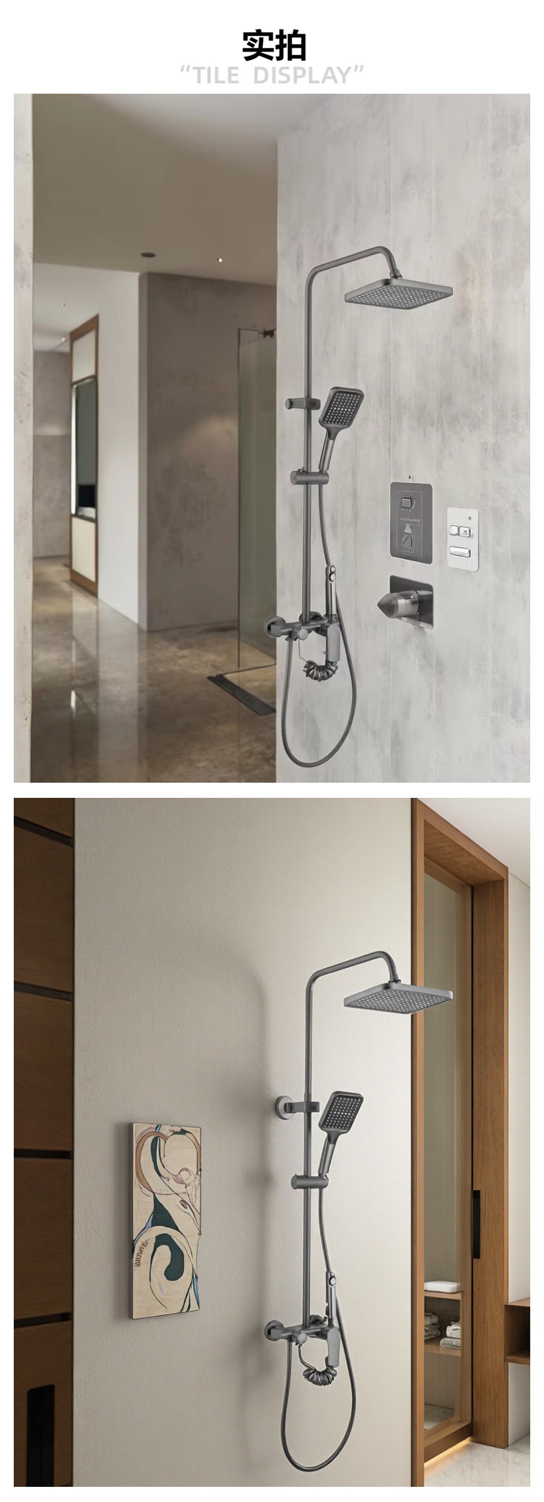 Yuer 건 그레이 샤워 키트 전체 구리 샤워 헤드 욕실 샤워 홈 항온 부스터 노즐