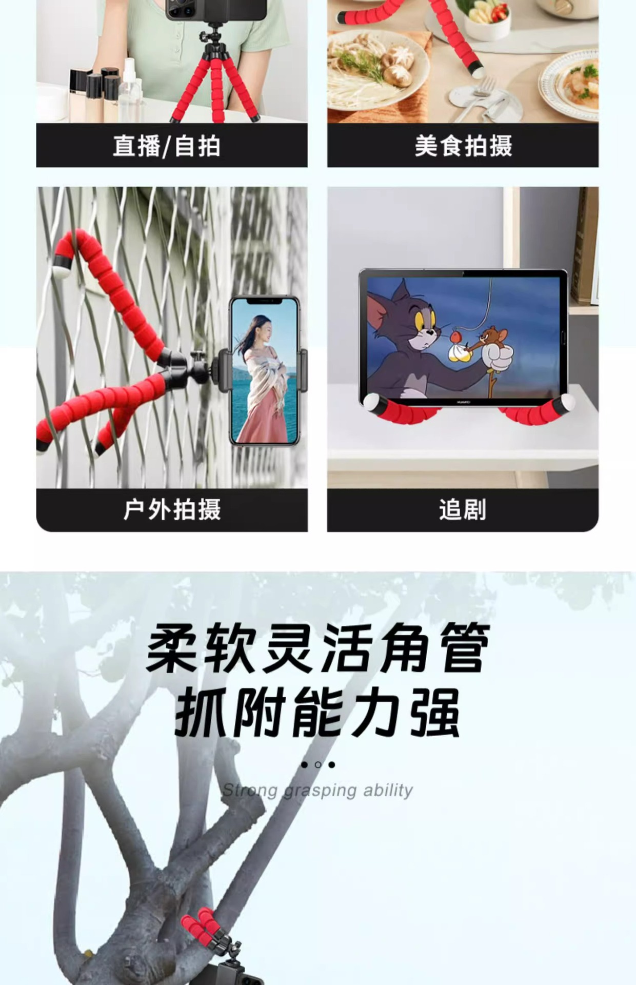 Octopus 휴대 전화 홀더 데스크탑 게으른 삼각대 라이브 방송 삼각형 클립 다기능 야외 촬영 셀카 스탠드