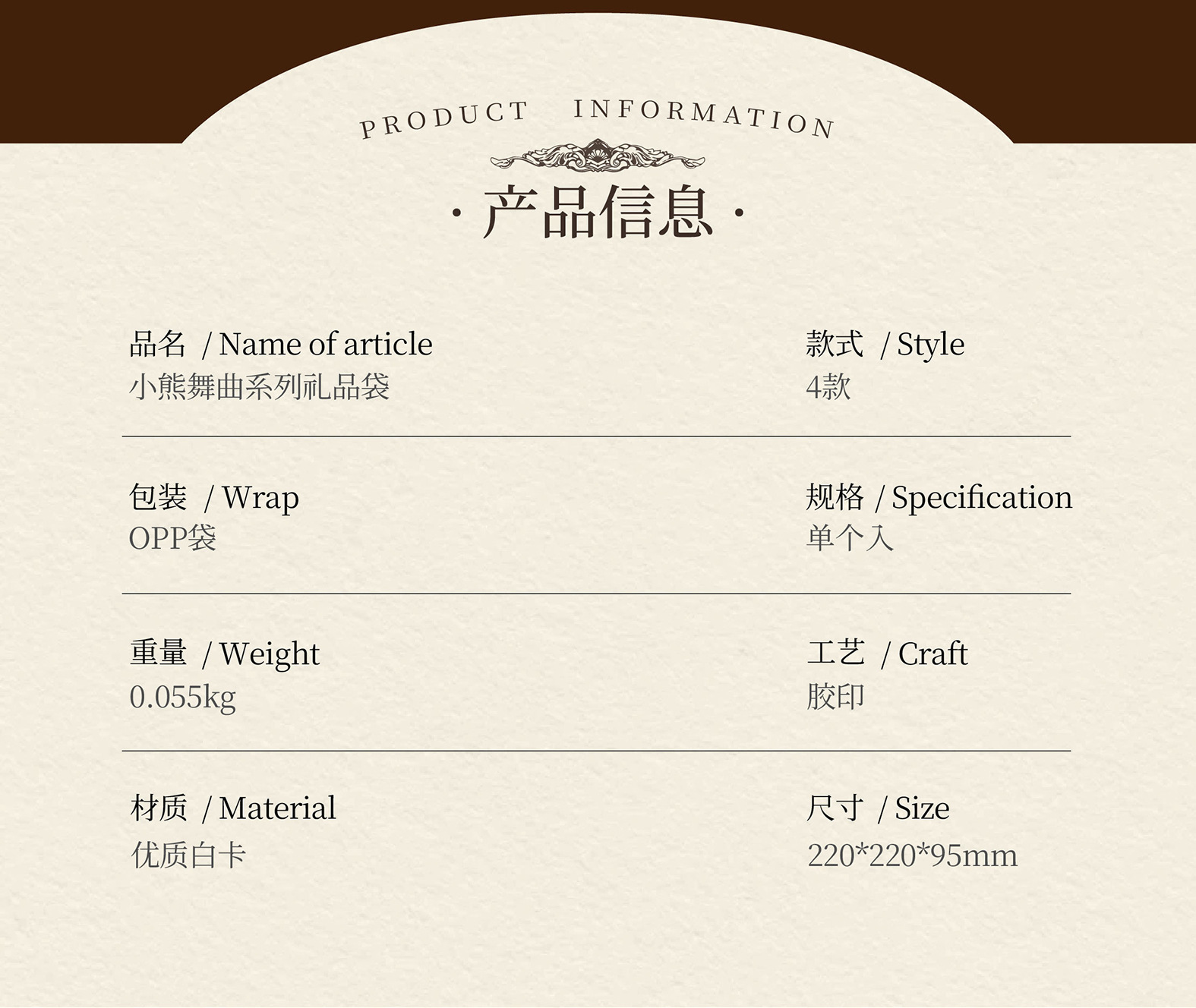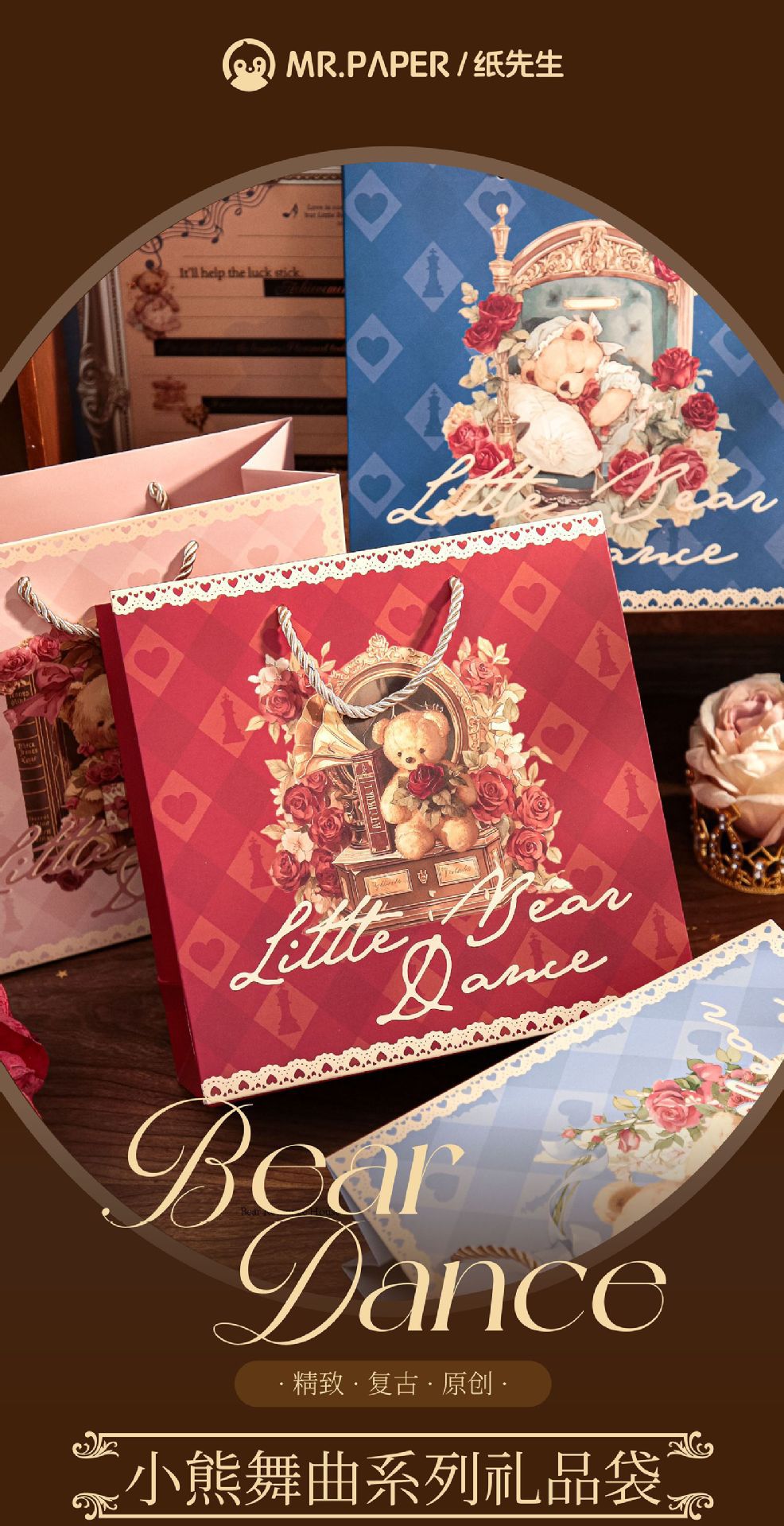 Mr. Paper 선물 가방 곰 댄스 시리즈 귀여운 고급 만화 선물 포장 보관 핸드백스토어 가기