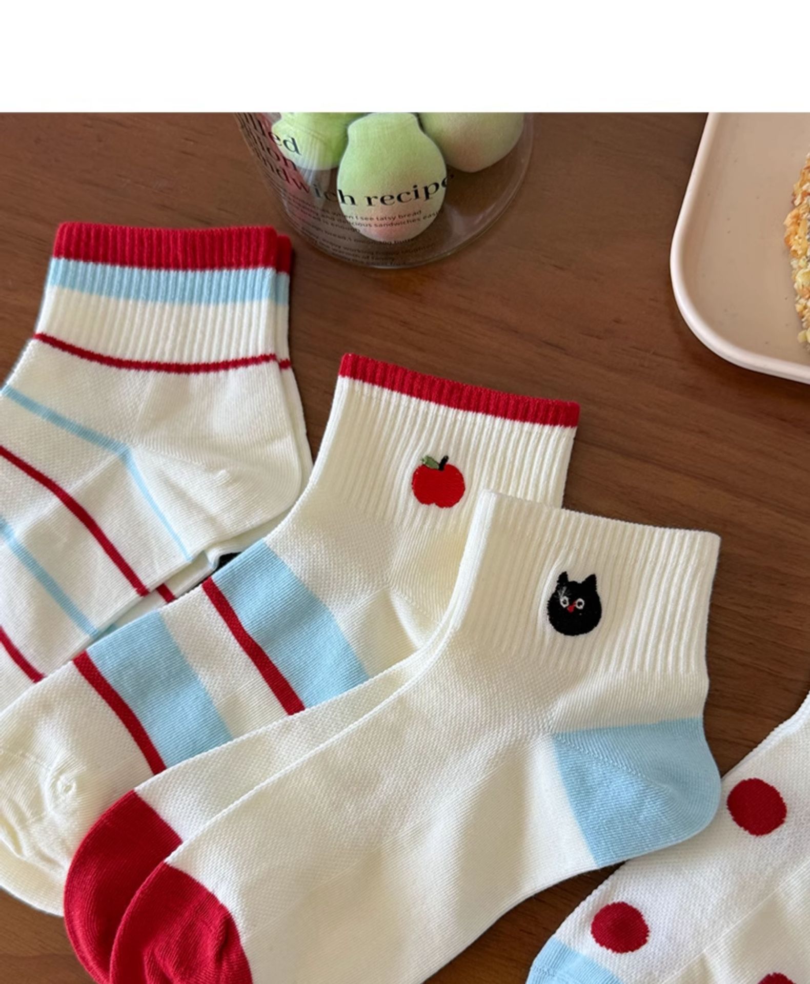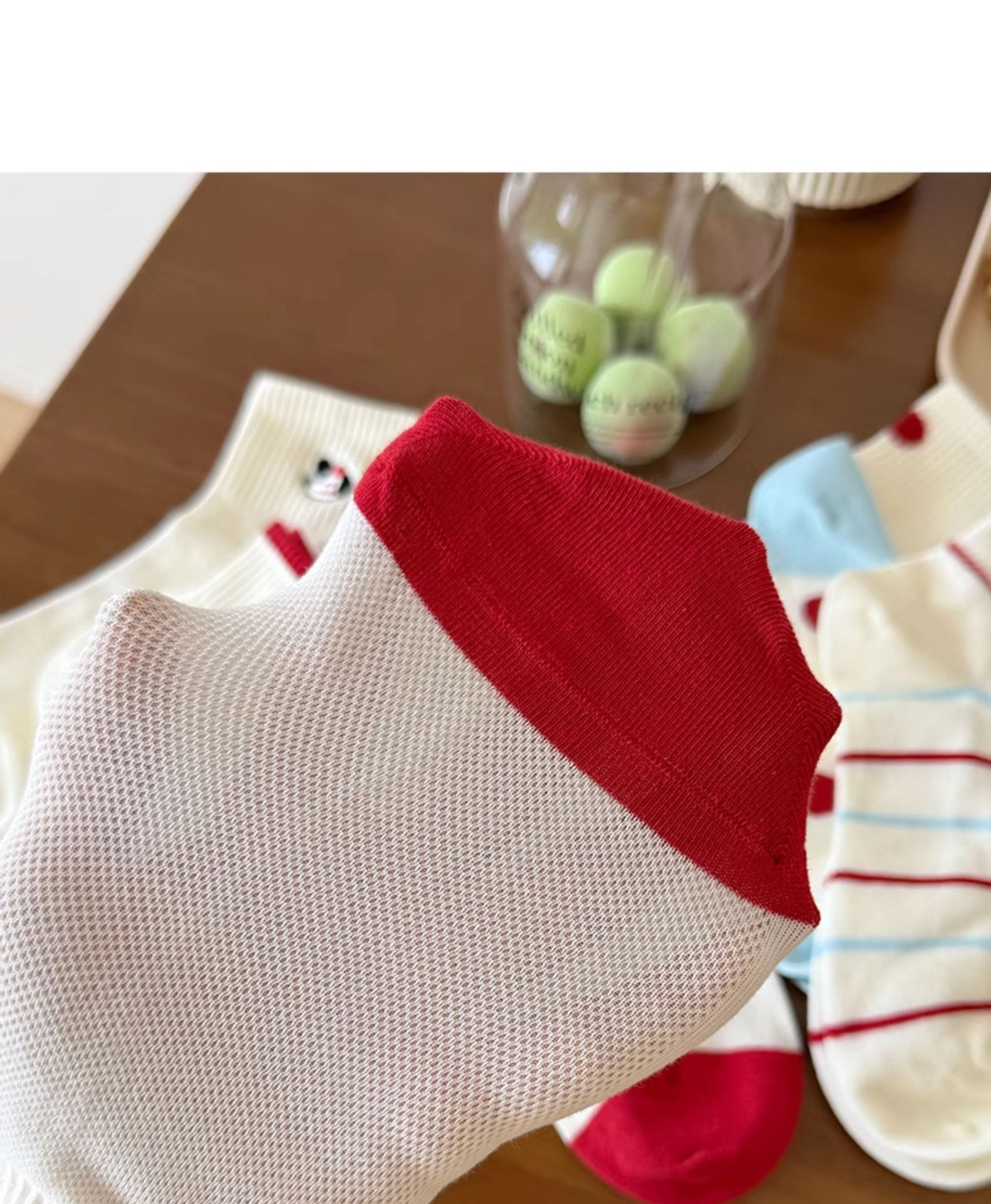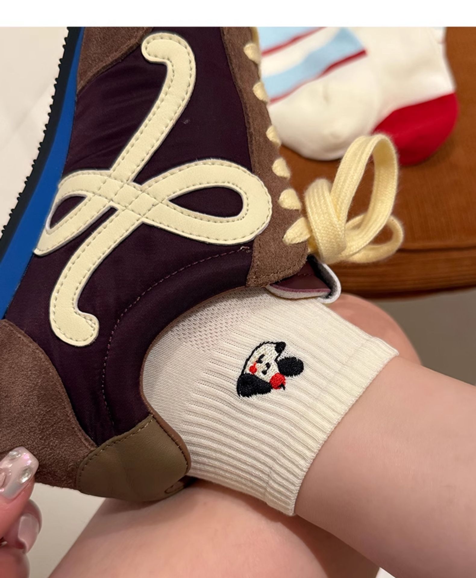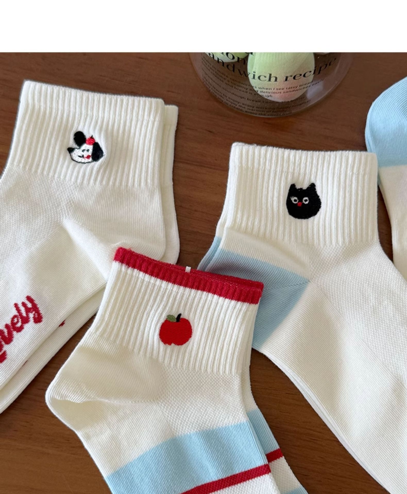 여름 얇은 양말 여성 통기성 INS 스타일 만화 수 놓은 면 양말 줄무늬 폴카 도트 중간 튜브 양말 도매