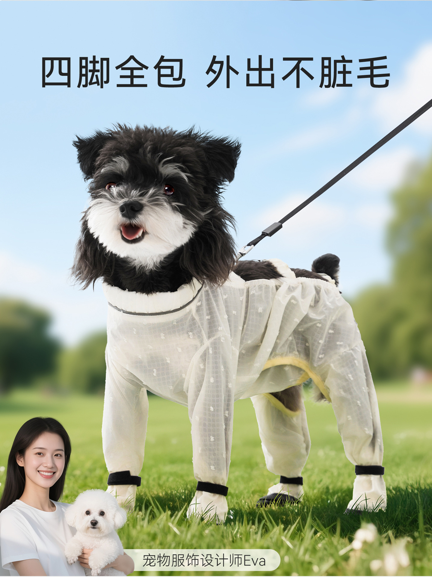 견인 가능한 자카드 발이 있는 애완동물 방진 바지, 4발 야외 작업복, 방수 및 오염 방지 중소형 개 옷