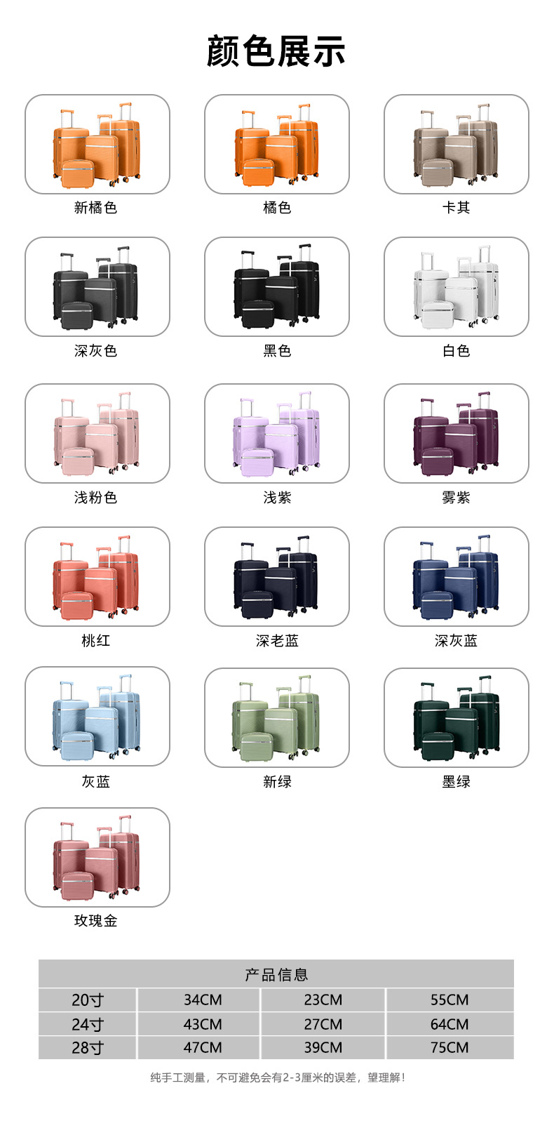 국경 간 PP 트롤리 케이스 다기능 여행 가방 20inch 대용량 캐주얼 여행 지퍼 가방 4 피스 세트스토어 가기