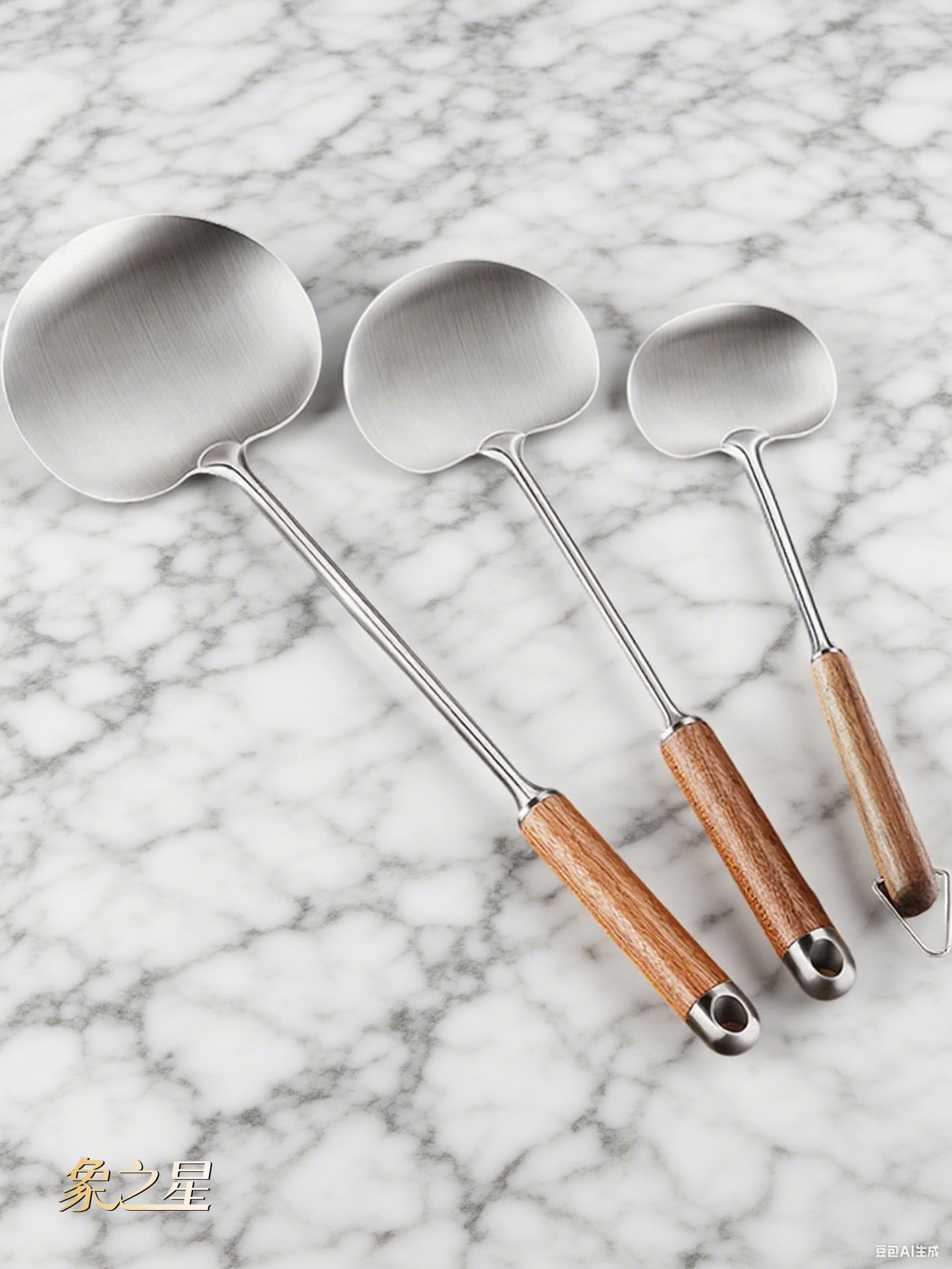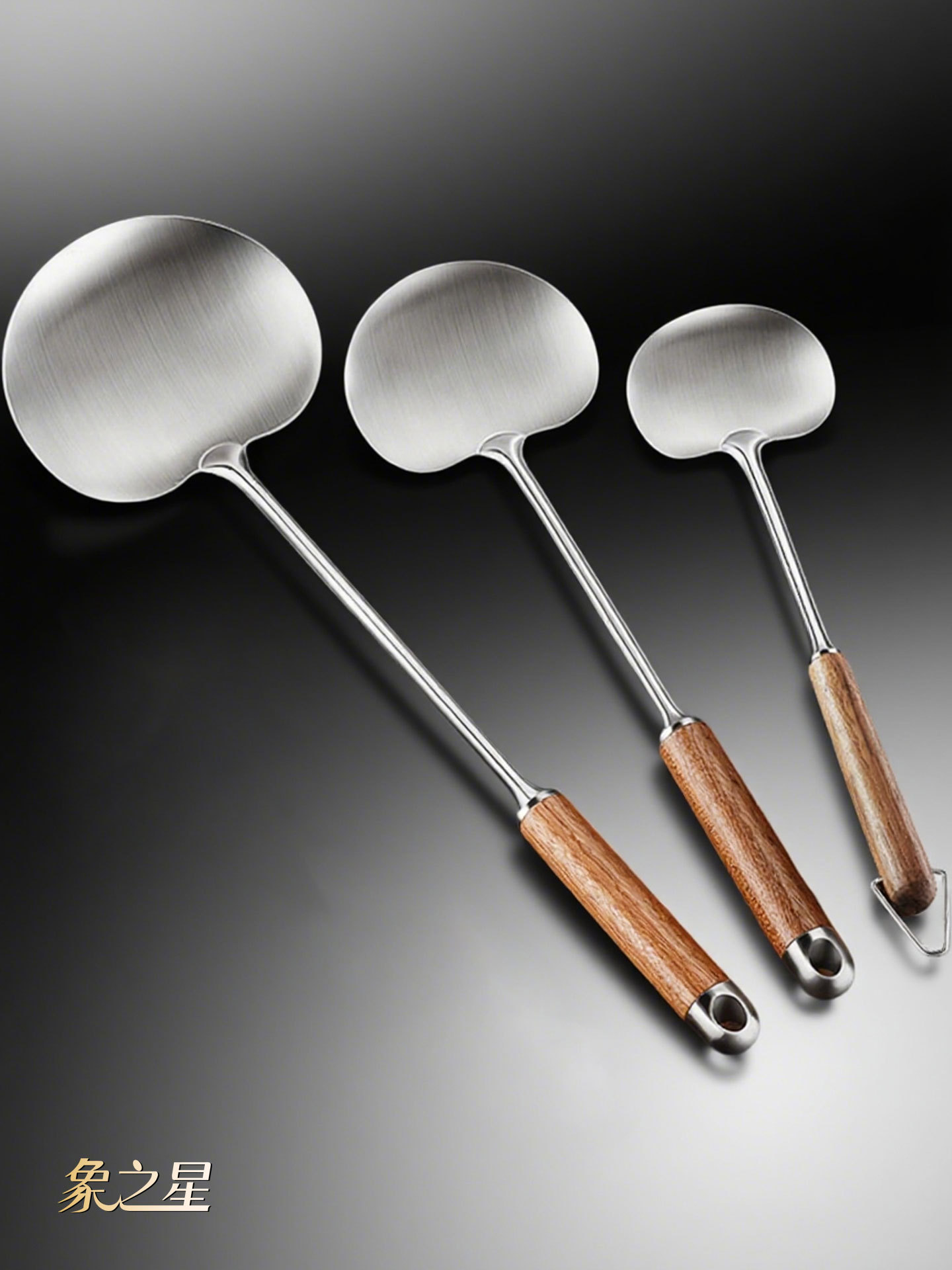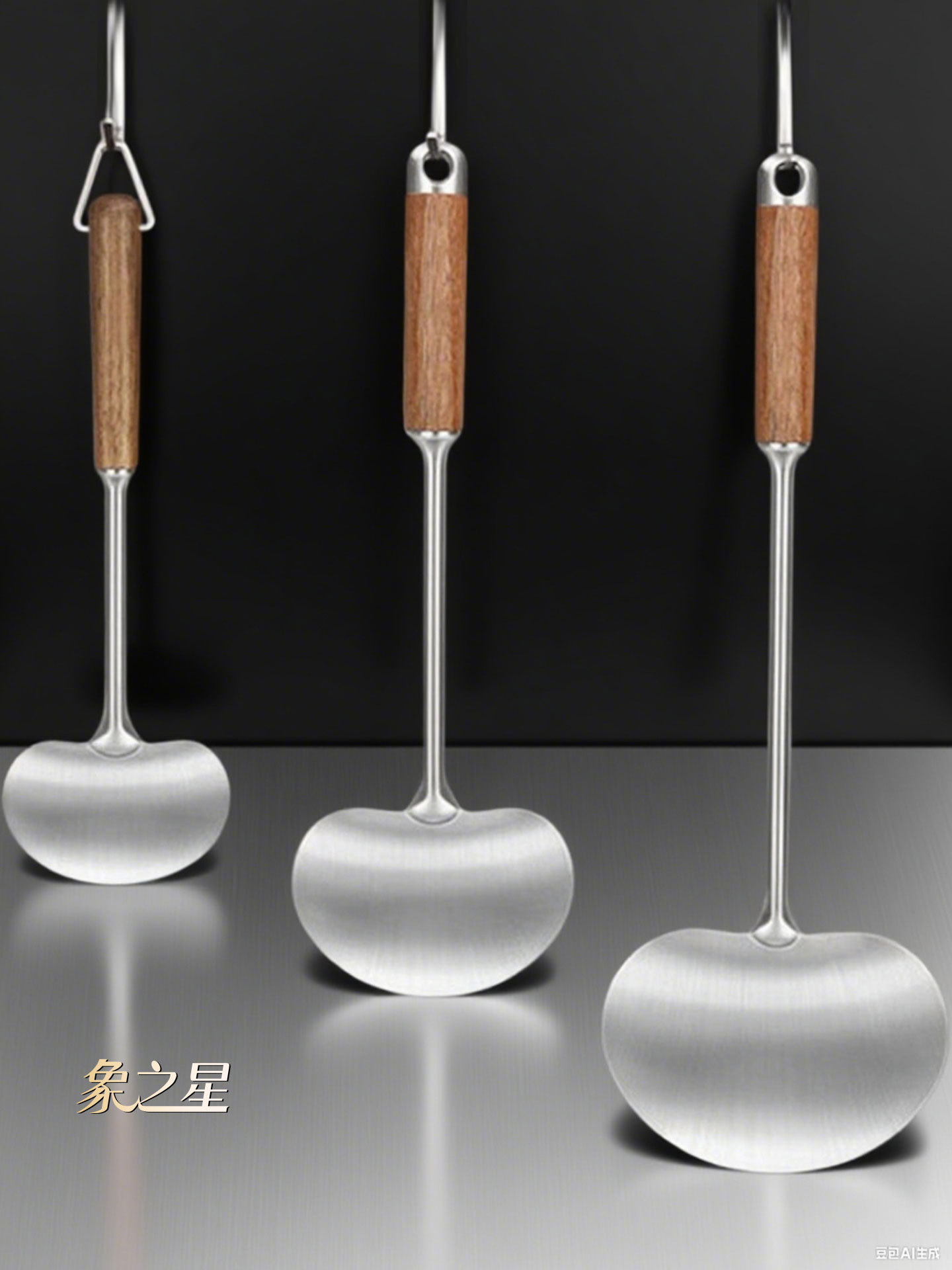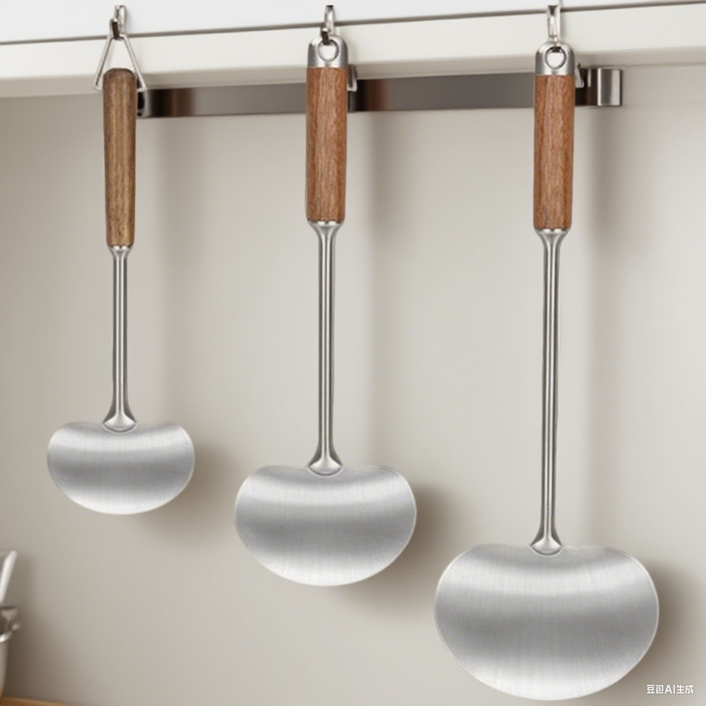 버섯 주걱 316L 스테인레스 스틸 요리 주걱 가정용 주걱 나무 손잡이 주방 요리 스푼 요리 스푼 주걱
