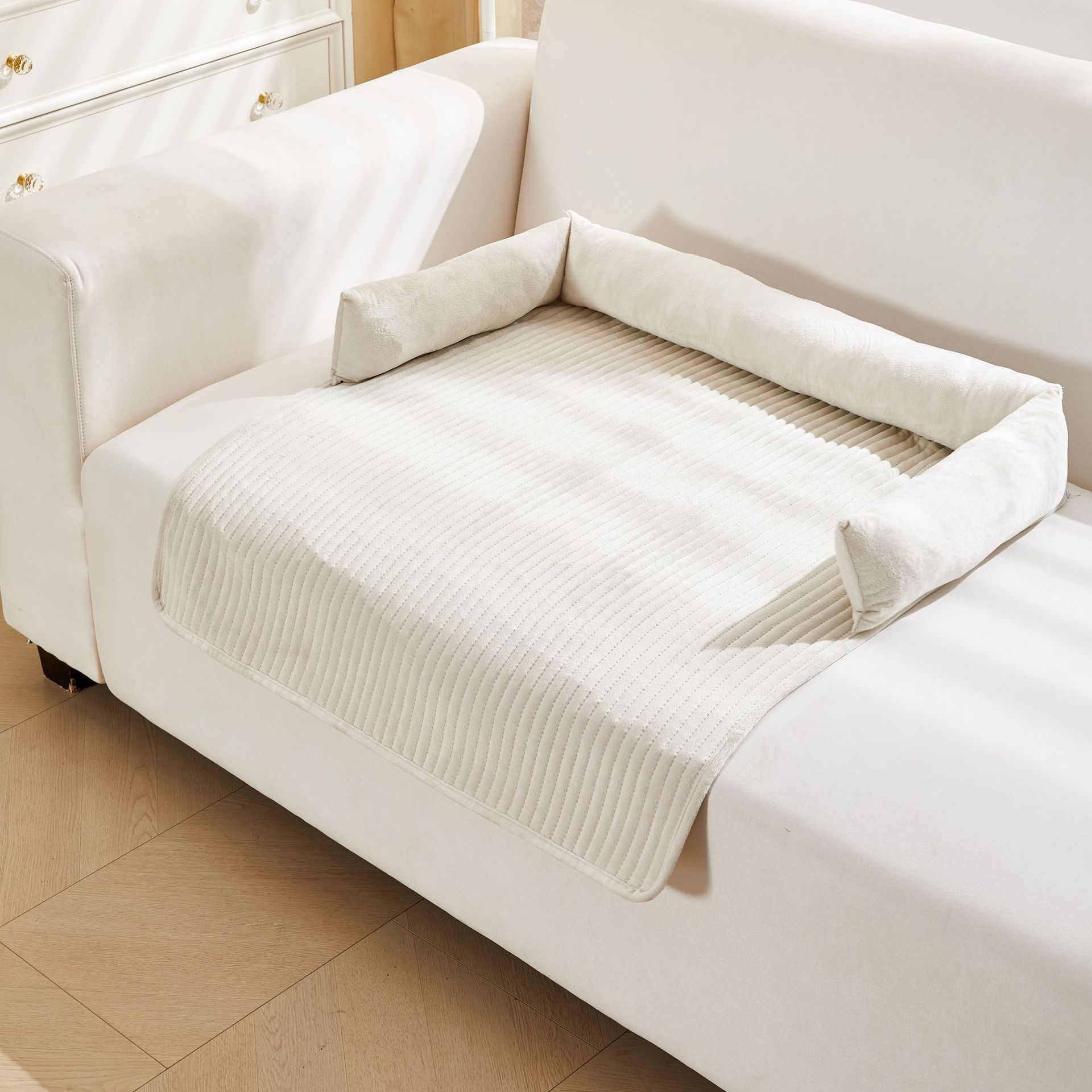 • 줄무늬 플러시 애완동물 소파 쿠션 베이지