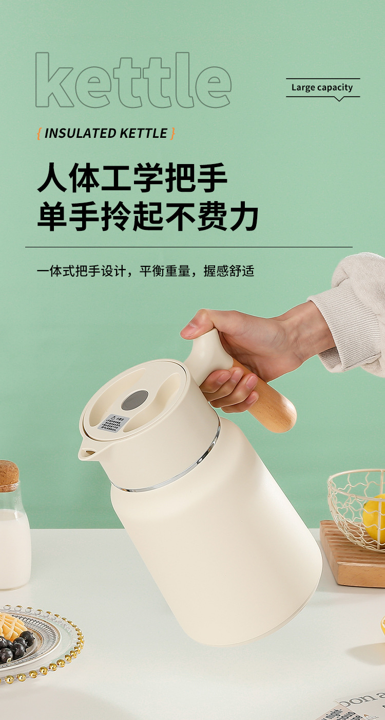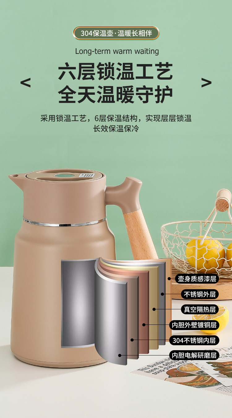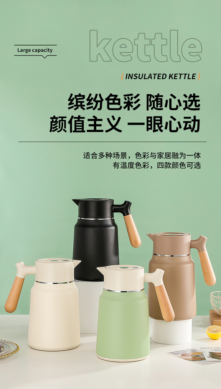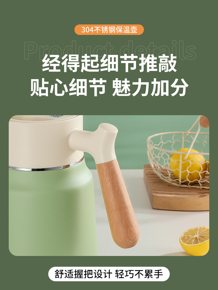 나무 손잡이 Guishi 진공 주전자 304 스테인레스 스틸 절연 주전자 가정용 보온병 호텔 레스토랑 보온병 절연 주전자스토어 가기