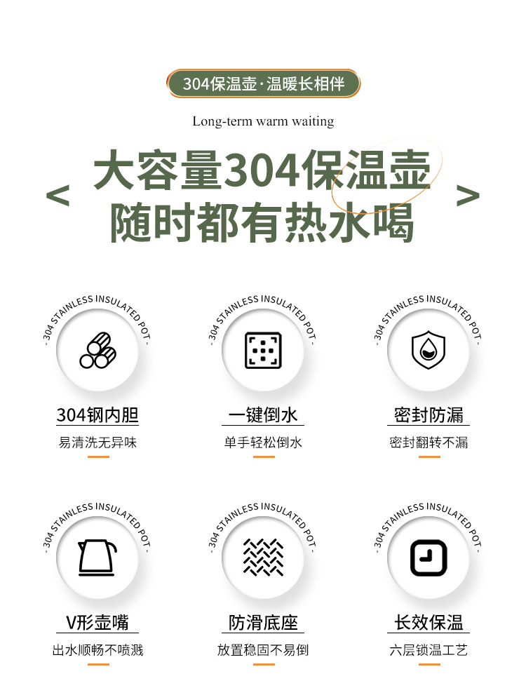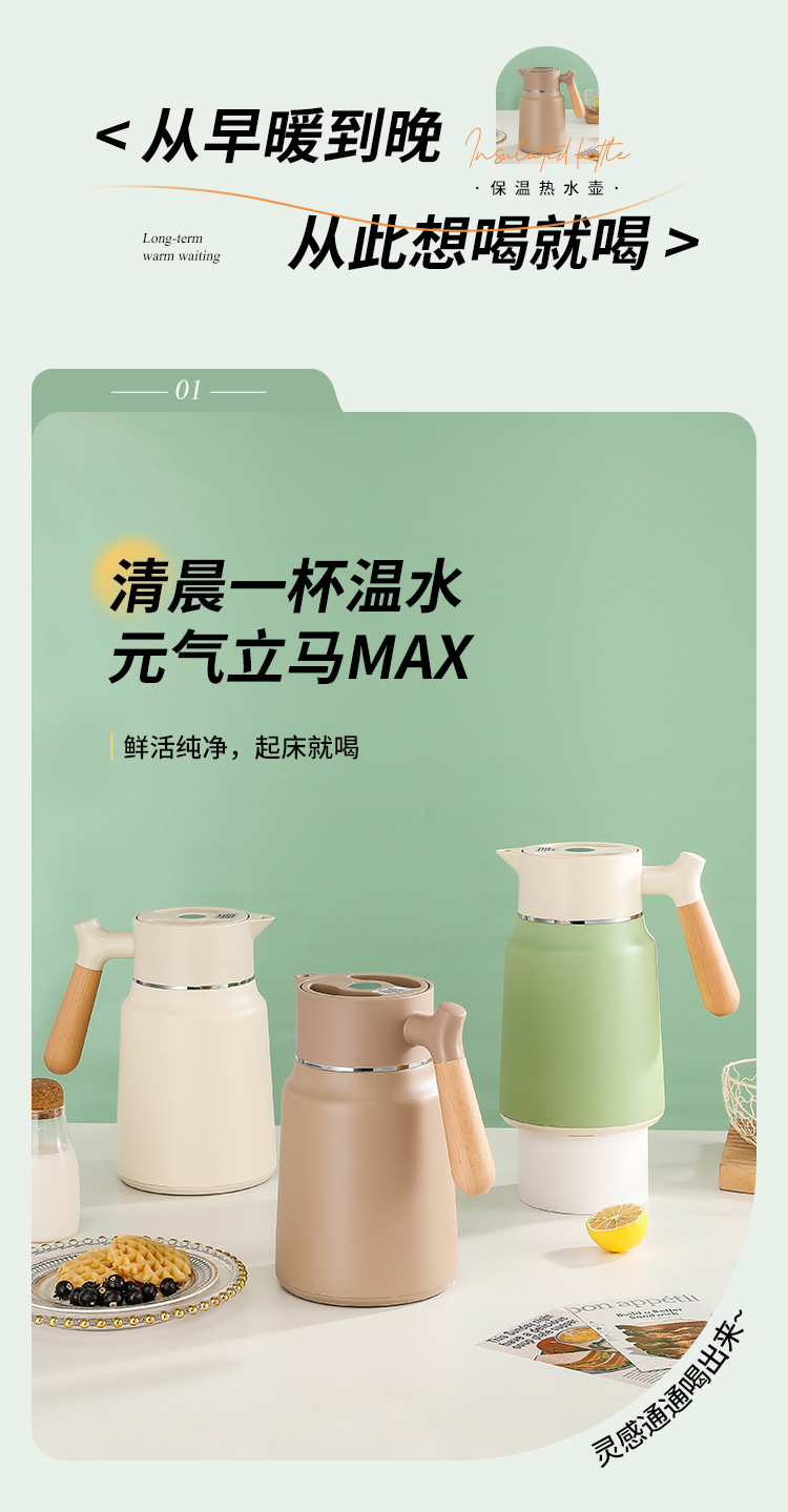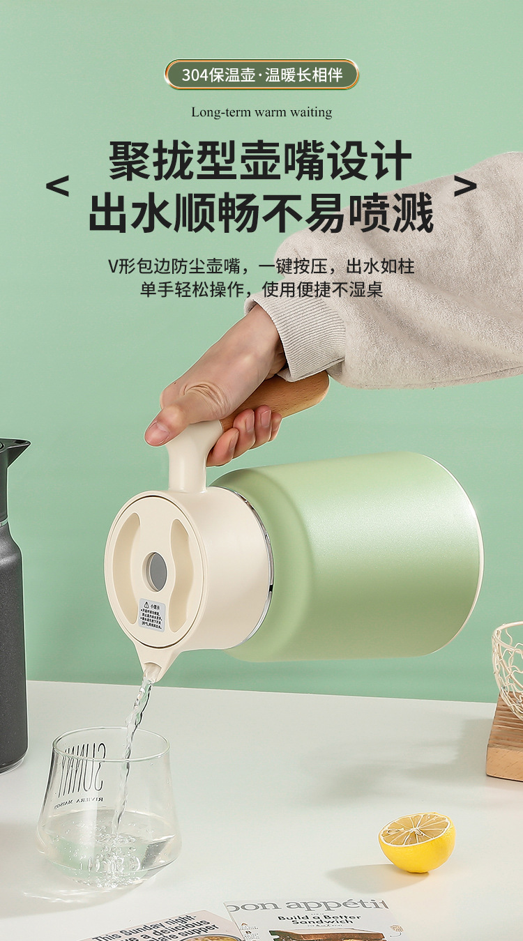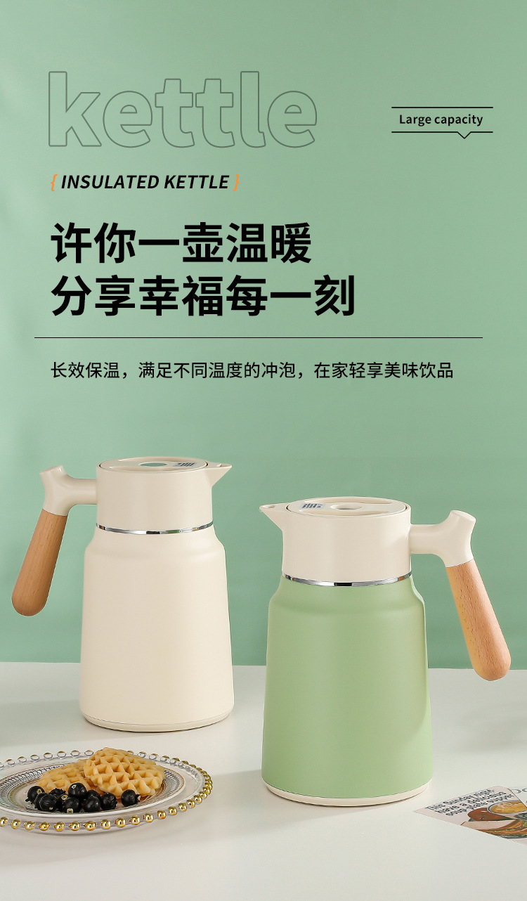 나무 손잡이 Guishi 진공 주전자 304 스테인레스 스틸 절연 주전자 가정용 보온병 호텔 레스토랑 보온병 절연 주전자스토어 가기