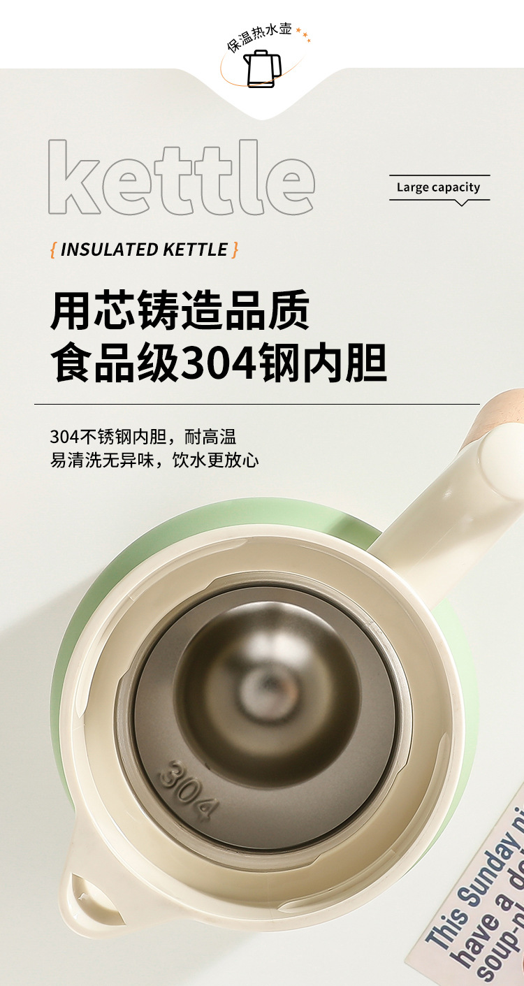 나무 손잡이 Guishi 진공 주전자 304 스테인레스 스틸 절연 주전자 가정용 보온병 호텔 레스토랑 보온병 절연 주전자