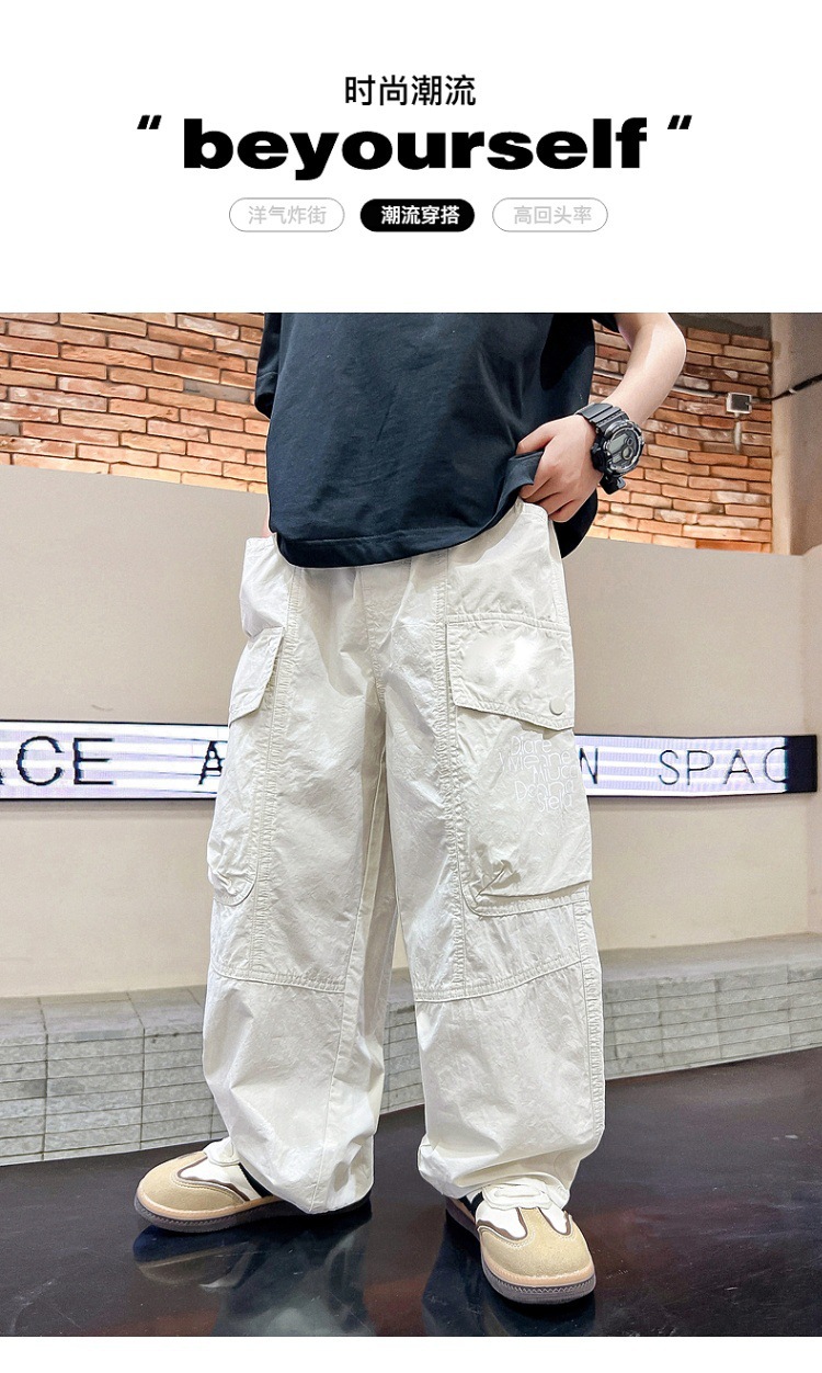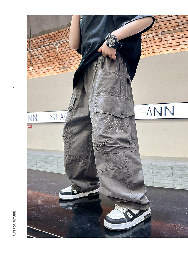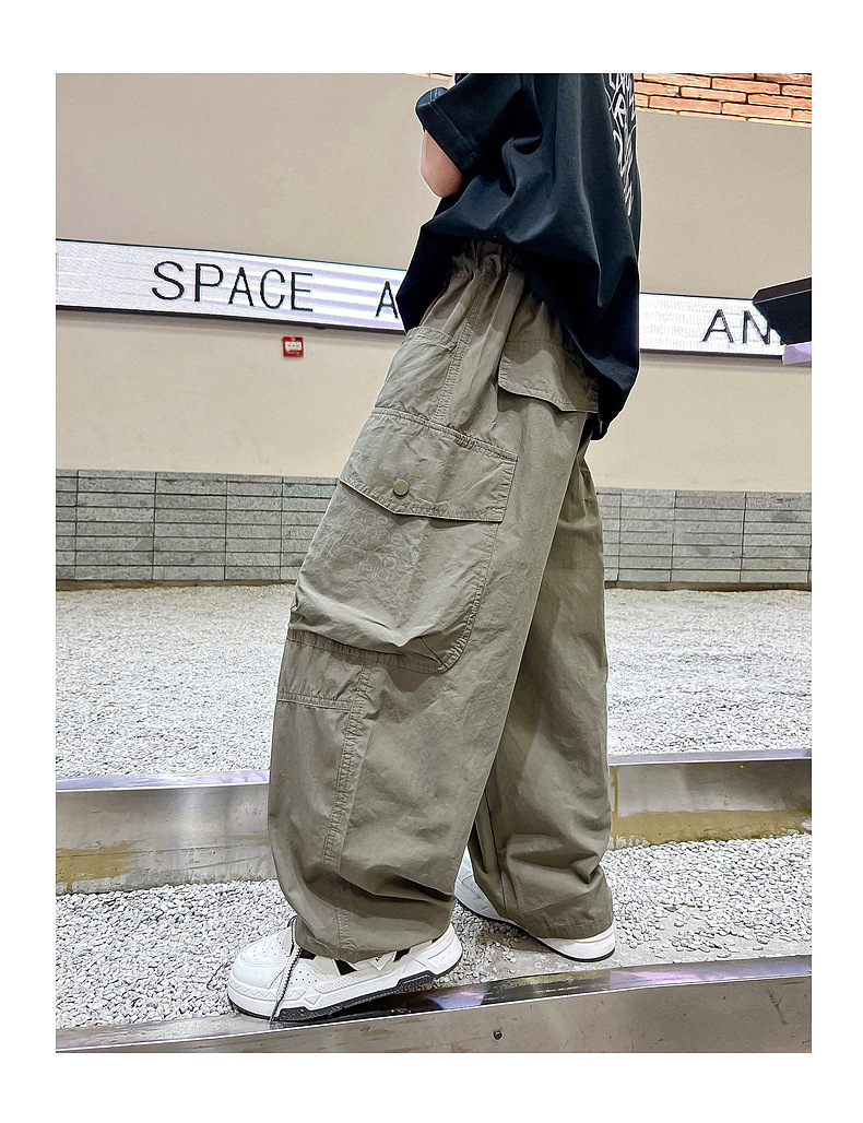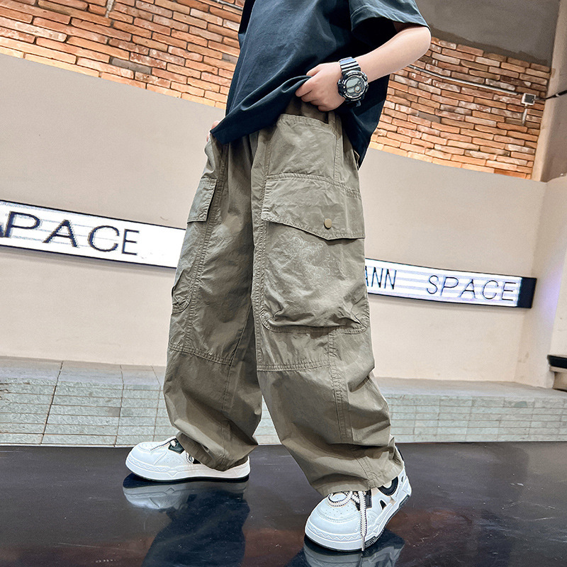 소년 여름 얇은 멋진 작업복 2025 새로운 느슨한 어린이 여름 바지 봄과 여름 스트레이트 바지 유행스토어 가기