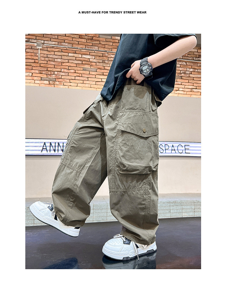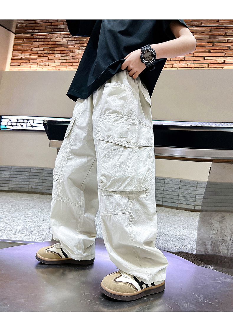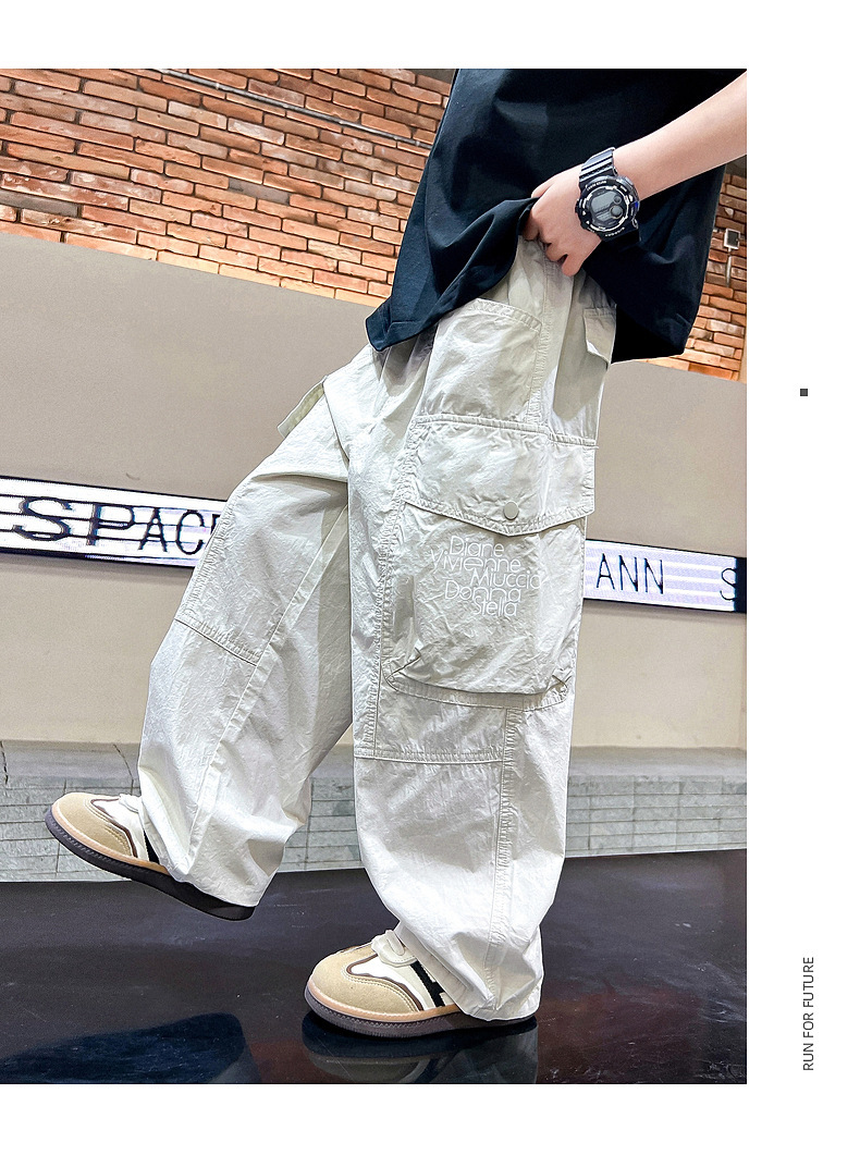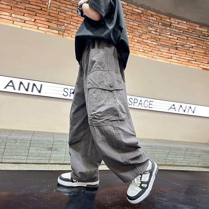 소년 여름 얇은 멋진 작업복 2025 새로운 느슨한 어린이 여름 바지 봄과 여름 스트레이트 바지 유행스토어 가기