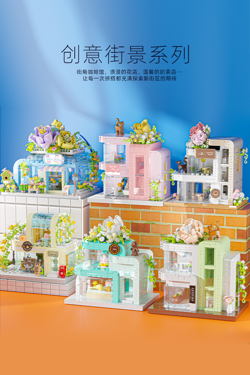 Yugao 미세 입자 크리 에이 티브 스트리트 뷰 시리즈 조립 장난감 P2471-P2476 스트리트 뷰 꽃 도매 배송스토어 가기