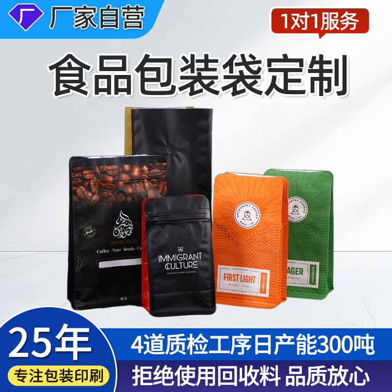 커피 식품 포장 백, 맞춤형 8면 밀봉 알루미늄 도금 과일 차 자체 스탠딩, 찢기 쉬운 지퍼 지퍼 백, 컬러 인쇄 로고