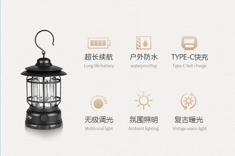 캠핑 조명, 실외 조명, 조명 말 랜턴, 매우 긴 배터리 수명, 캠핑 조명, 충전식 주변 조명, 실외 텐트 조명