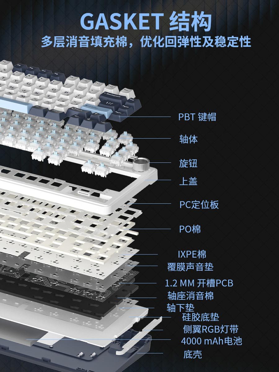 • 80키 - 지주측 각인 [3모드 유선 + 무선 2.4g + 블루투스] RGB - 스트리머 블루축