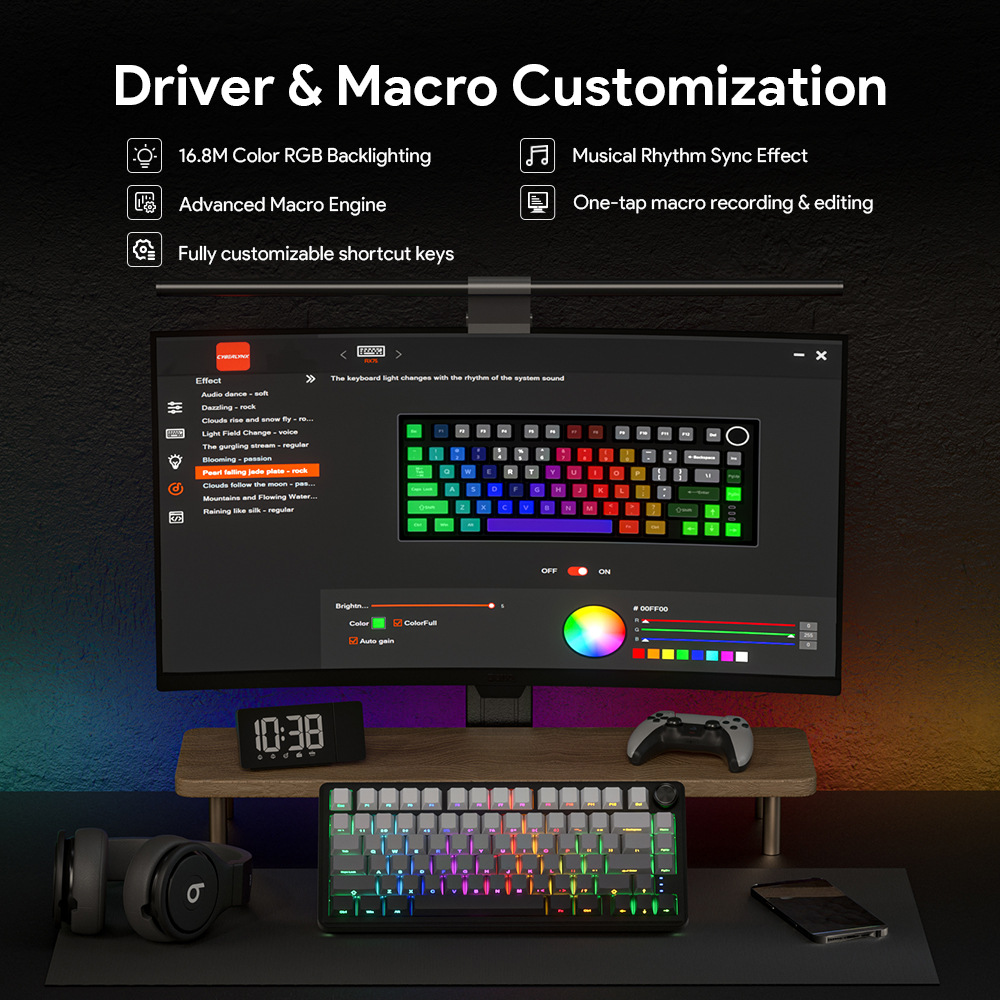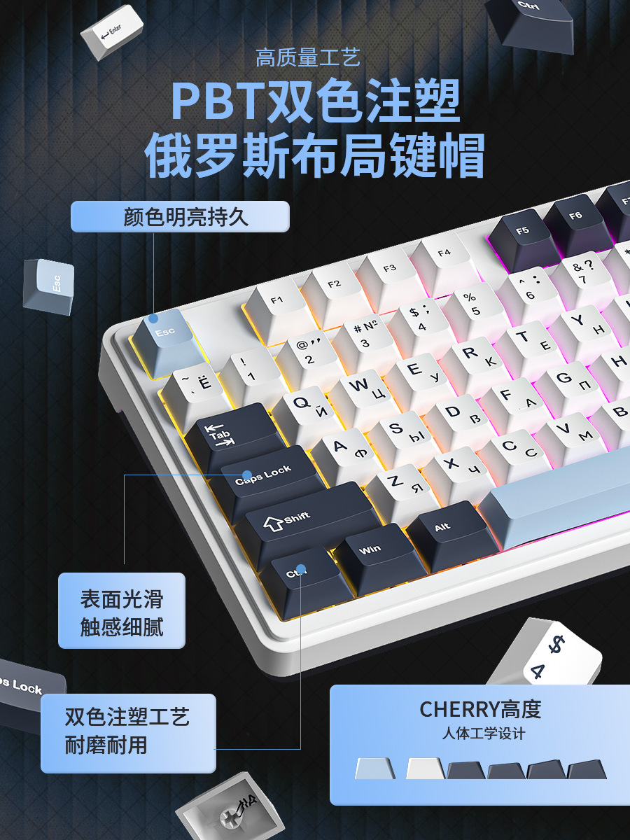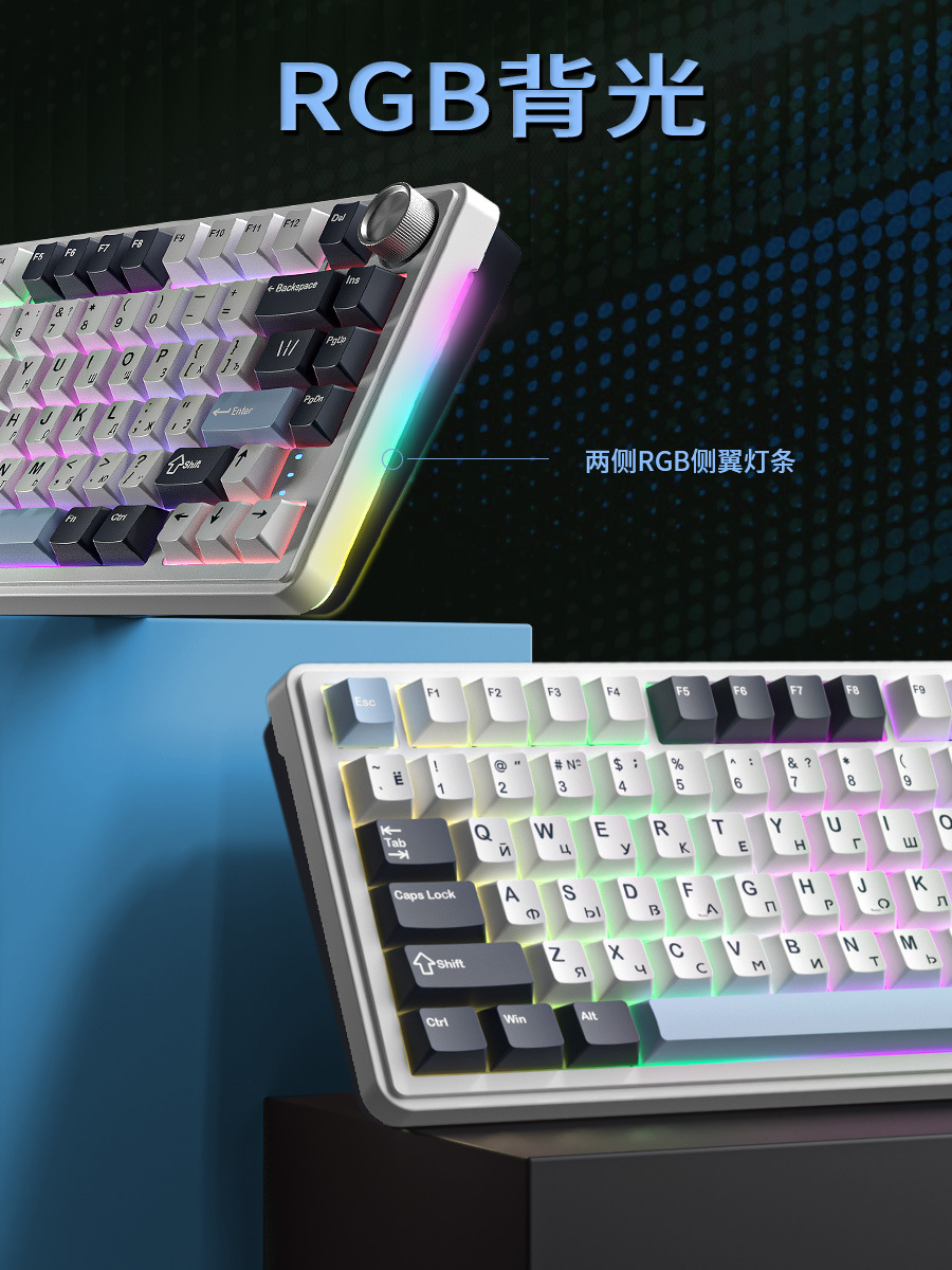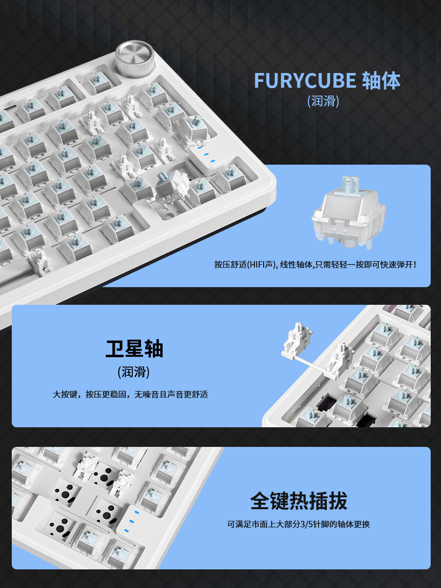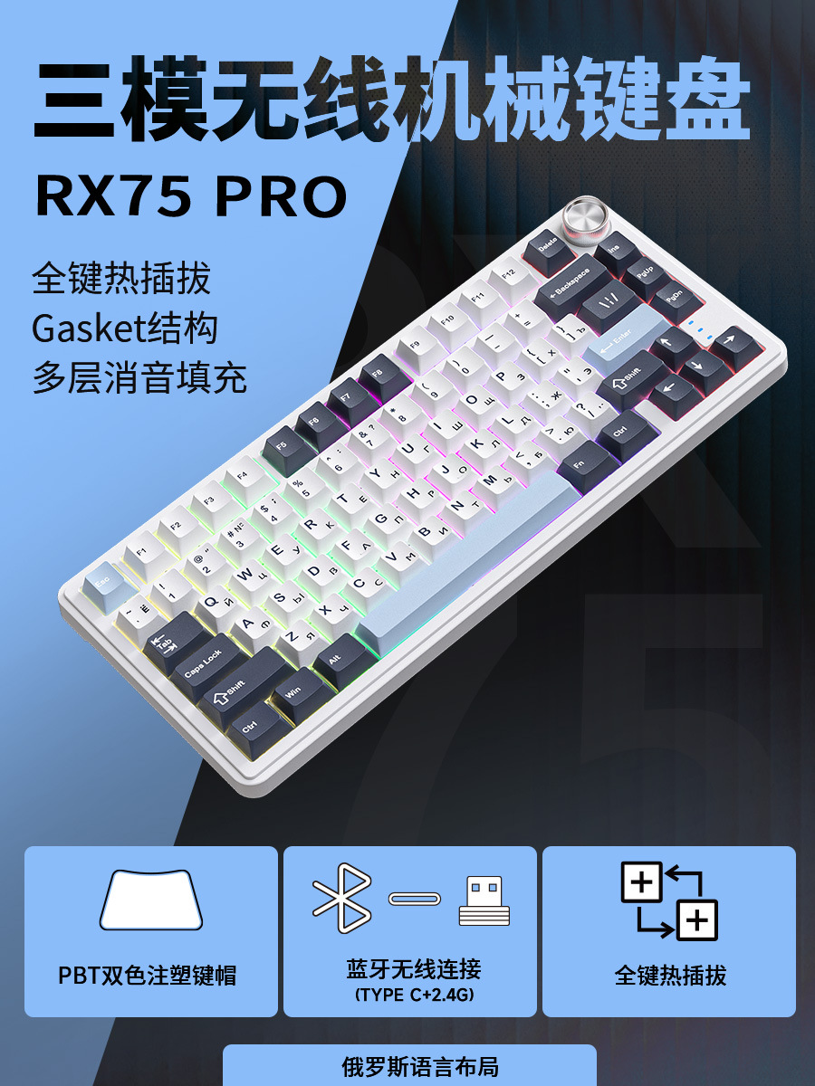 FURYCUBE RX75 3모드 무선 맞춤형 기계식 키보드 사무용 게임용 e스포츠 사이드 각인 키보드 해외배송