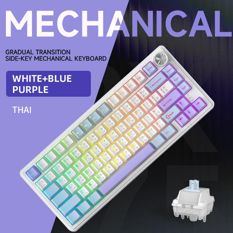• 80키 태국어 - 지주 측면 각인 [3모드 유선 + 무선 2.4g + 블루투스] RGB - 스트리머 블루 축