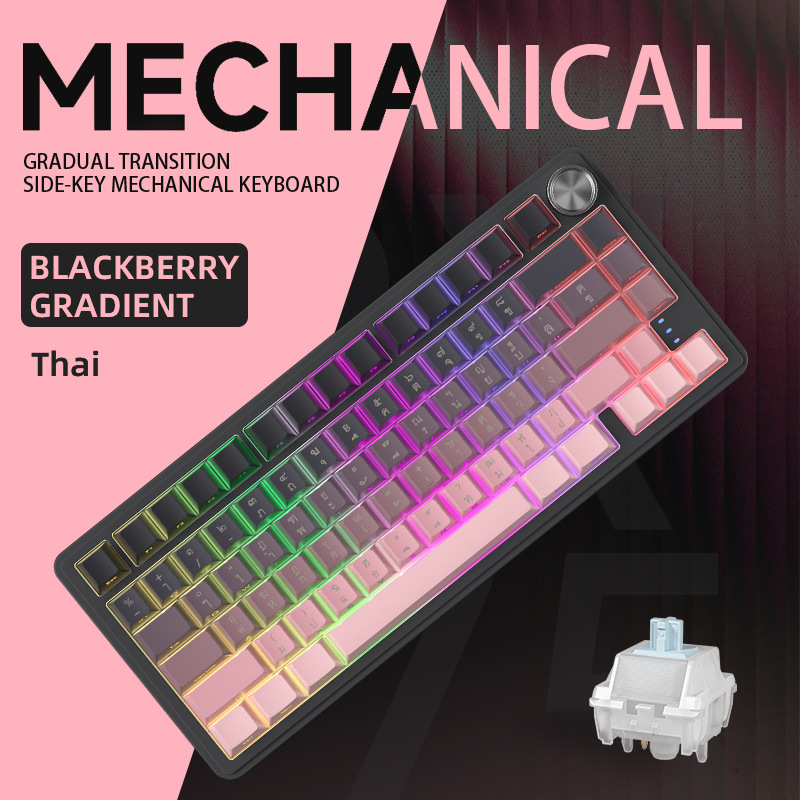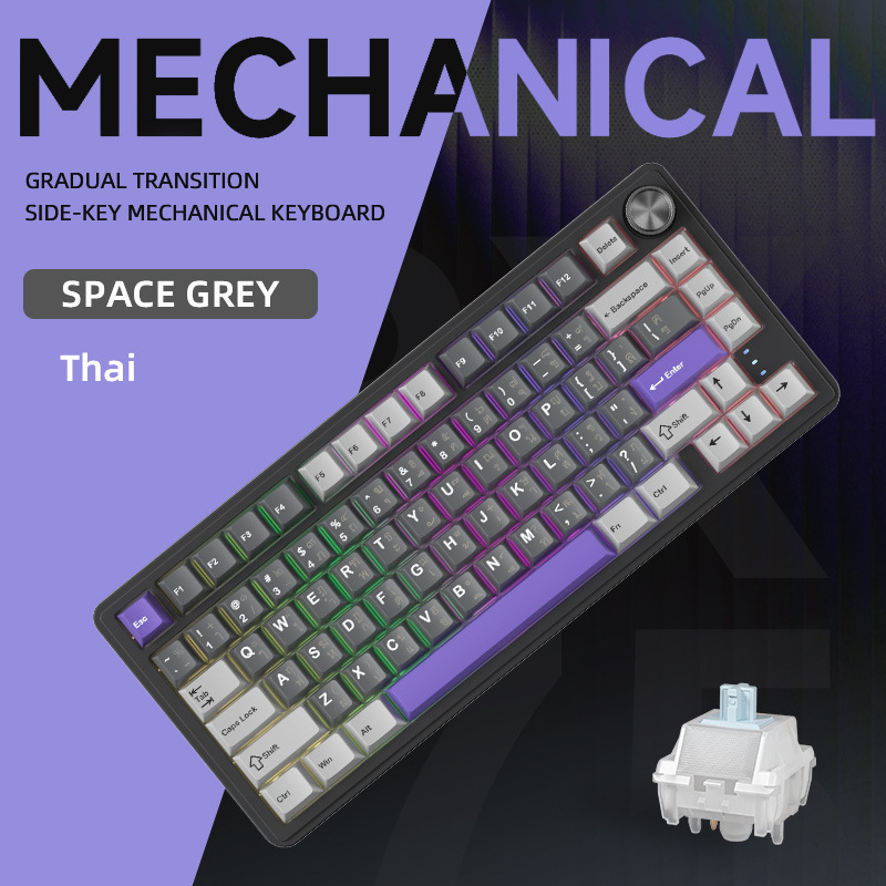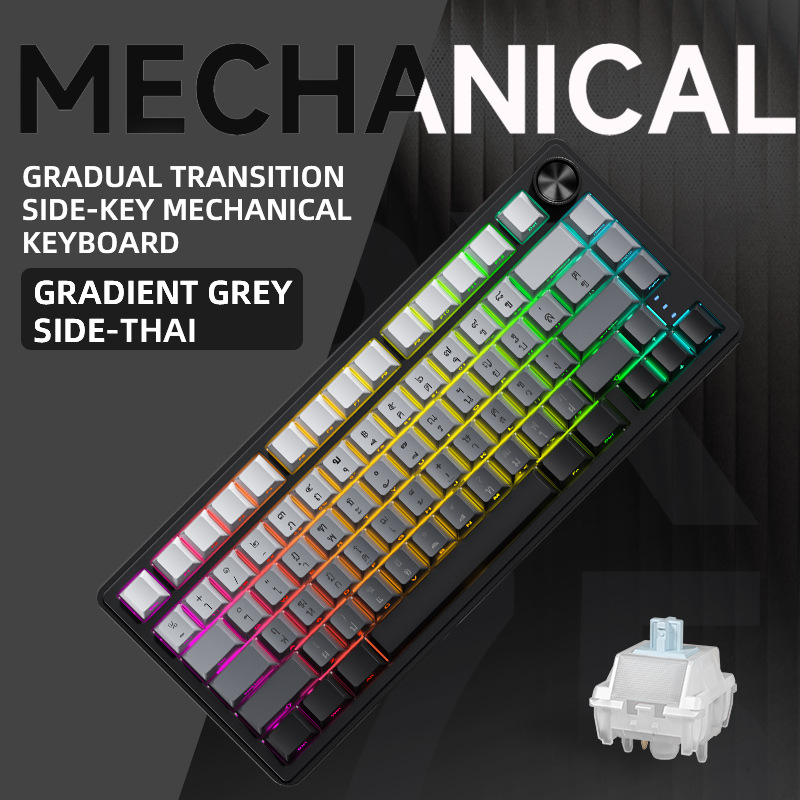 • 80키 태국어-스페이스 그레이 [3모드 유선+무선 2.4g+블루투스] RGB-스트리머 블루 스위치