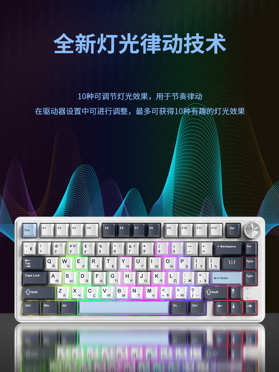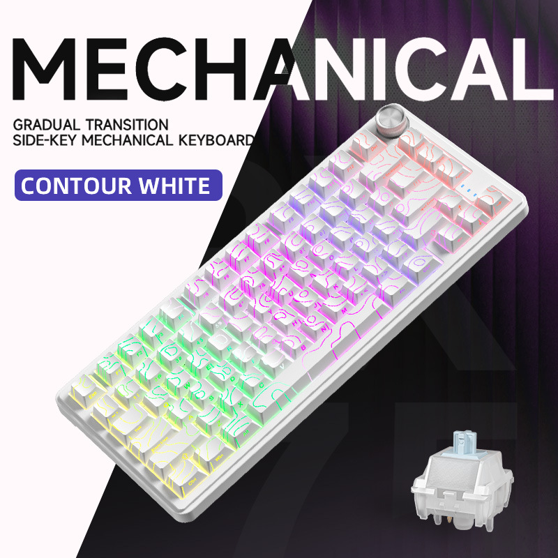 • 80키 - 흰색 등고선 [3모드 유선 + 무선 2.4g + 블루투스] RGB - 스트리머 블루 축