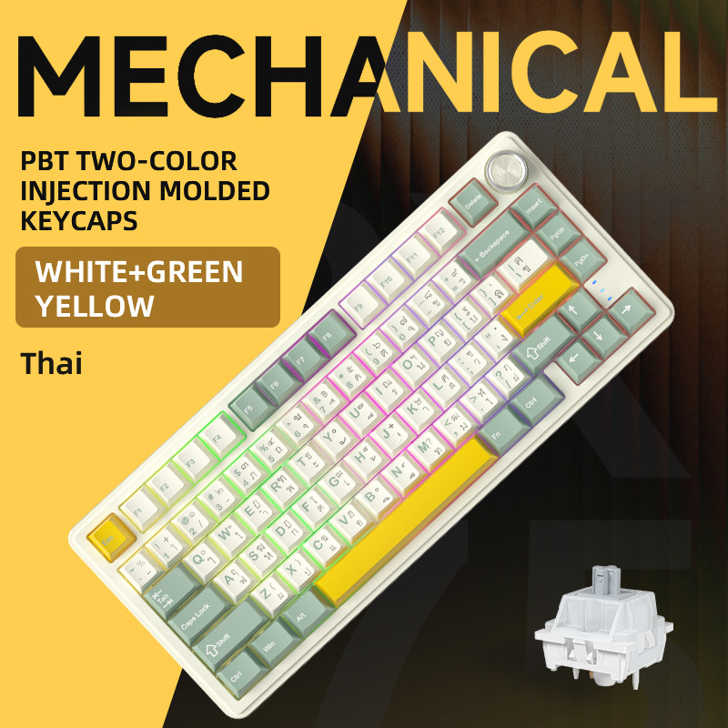 • 80키 태국어 - 화이트/그린/옐로우 [유선] RGB - 경쟁형 은축