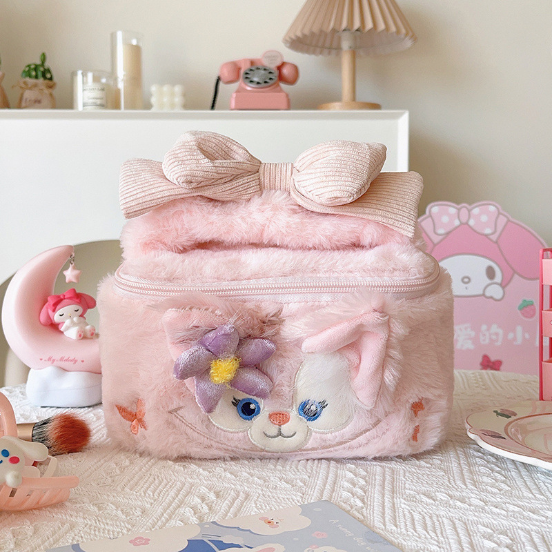 Shirley Rose Pie Ballet Bunny Belle Chef Dog 플러시 자수 휴대용 화장품 가방 여행 휴대용 보관 가방