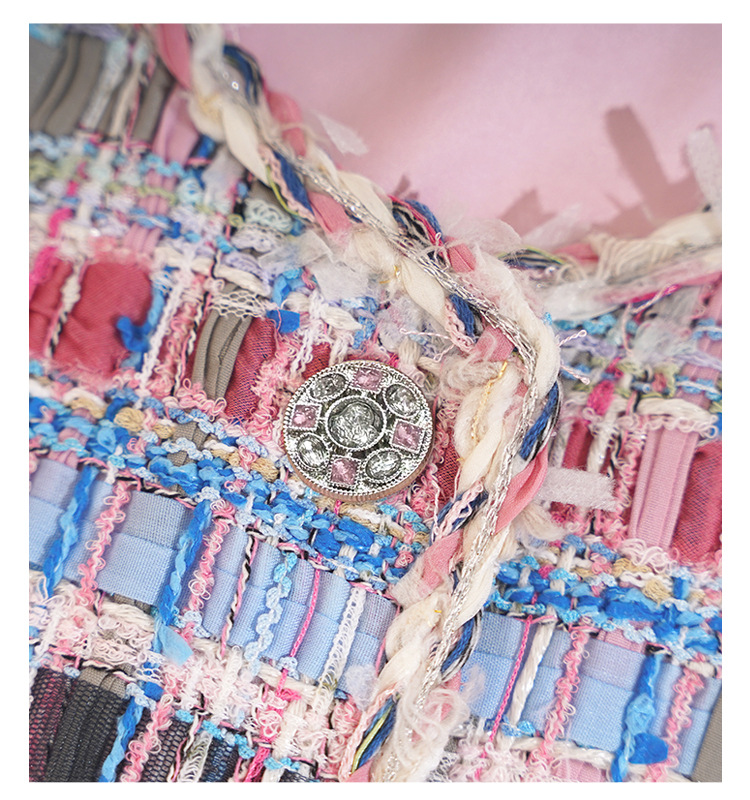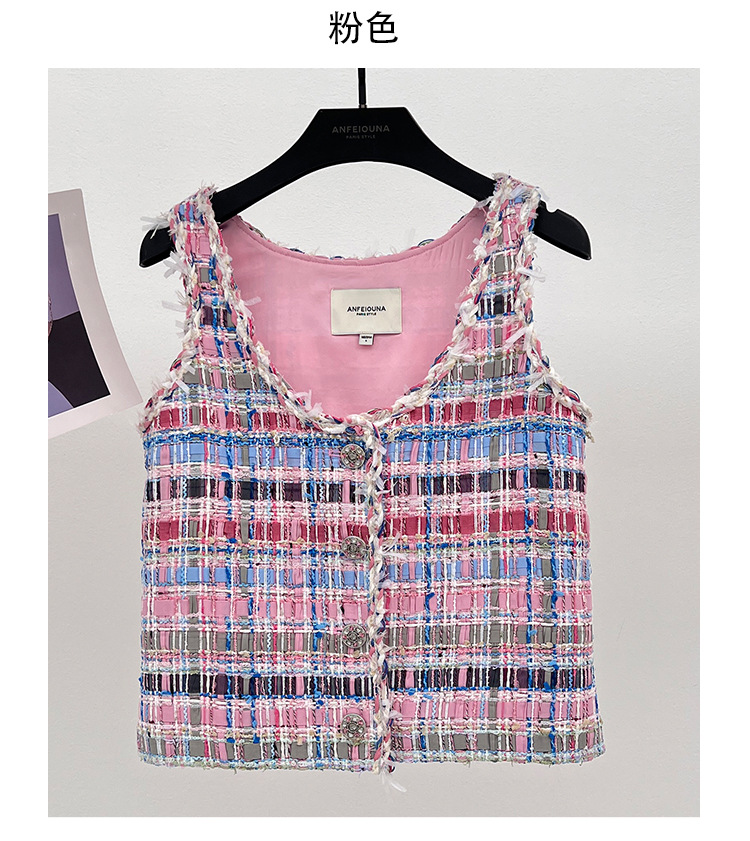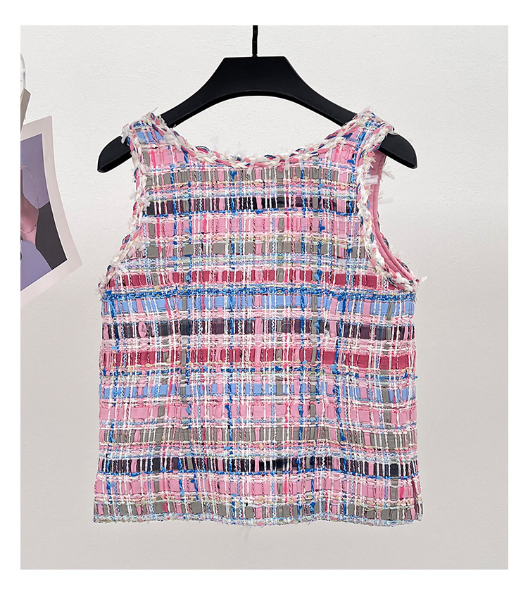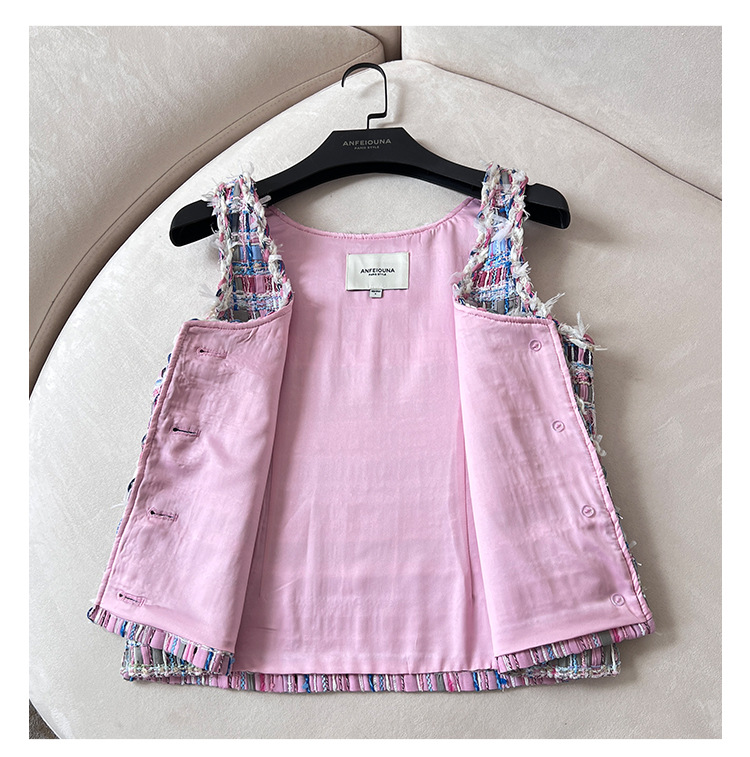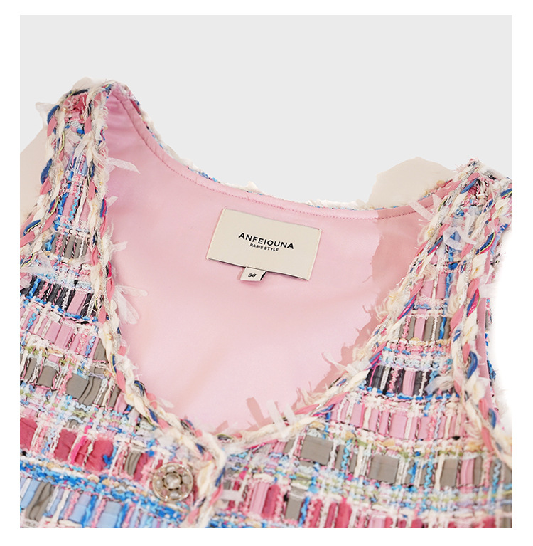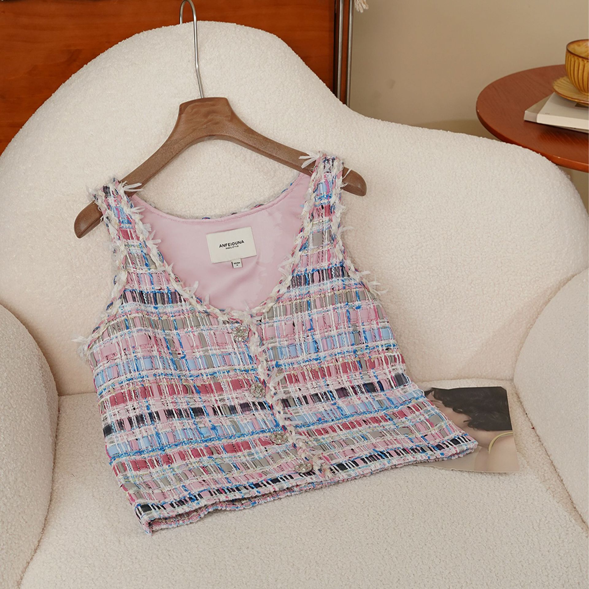 Amfiona 2025 새로운 색상 작은 향기로운 짠 트위드 프린지 레이스 U 넥 민소매 여성 조끼스토어 가기