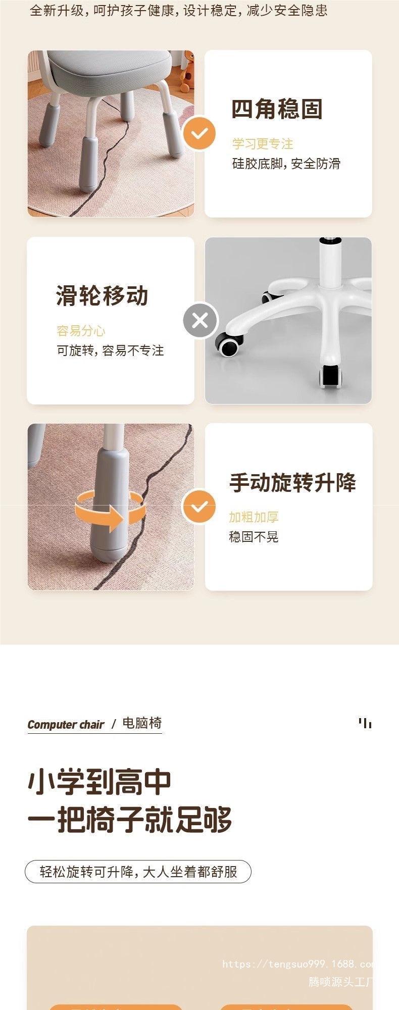 어린이 학습 의자, 초등학생 숙제 의자, 앉은 자세 교정, 조절 가능한 쓰기 의자, 가정용 책상 의자