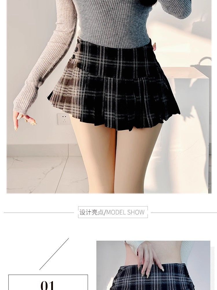 ins 봄 여름 다재다능한 달콤하고 시원한 핫 소녀 로우 웨이스트 플리츠 미니 스커트 아메리칸 레트로 원사 염색 패브릭 체크 무늬 스커트스토어 가기