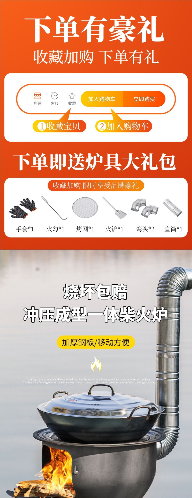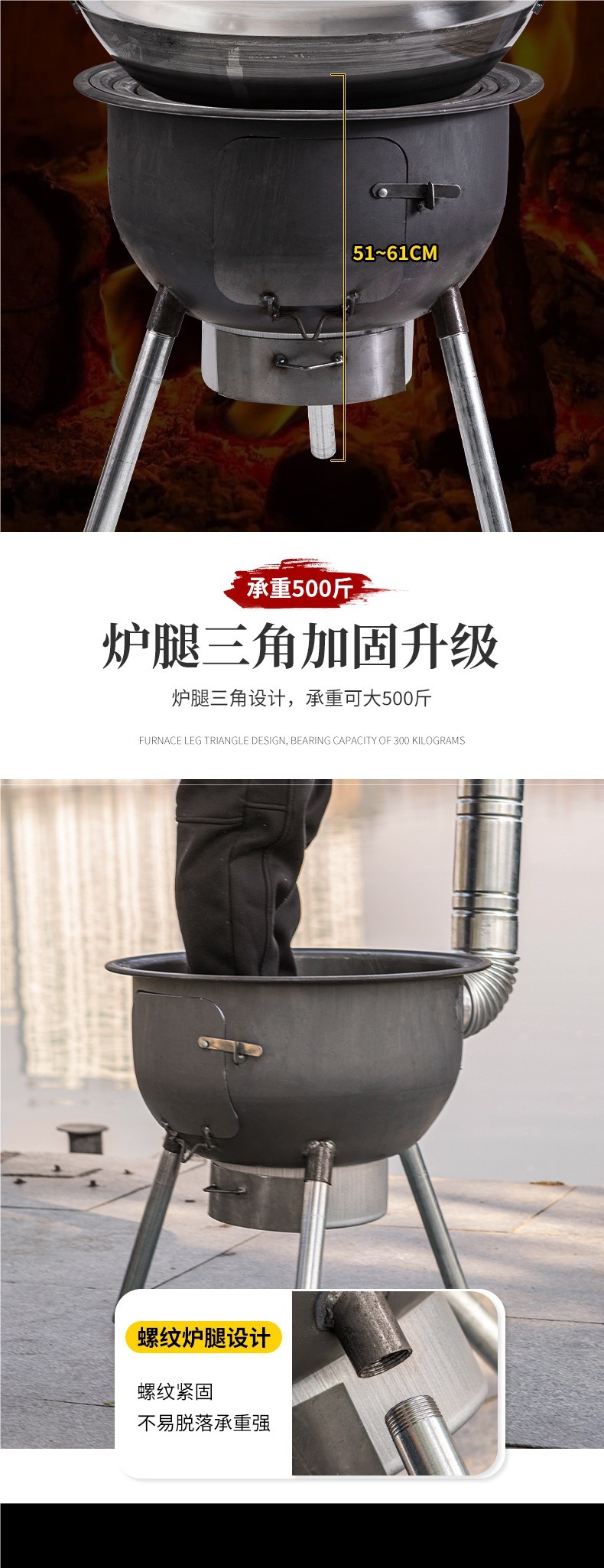 새로운 장작 난로, 가정용 농촌 장작 난로, 장작 모바일 스토브, 대형 냄비, 야외 캠핑 스토브, 지상 냄비스토어 가기