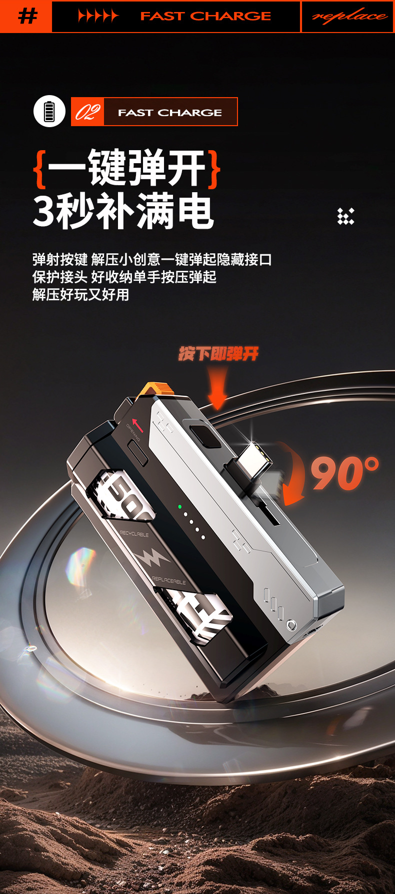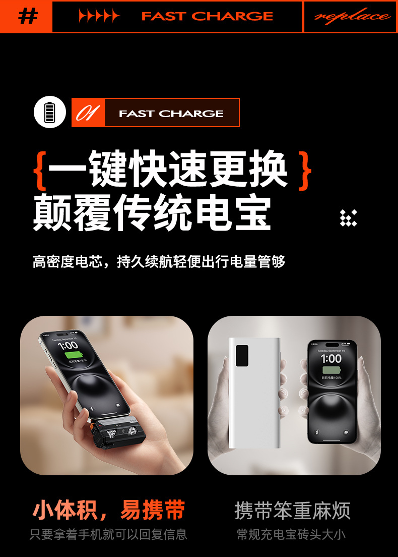 Kuwa Jia 배터리 보조베터리 교체 가능한 배터리 캡슐 보조베터리 대용량 고속 분리형 모바일 전원 공급 장치스토어 가기