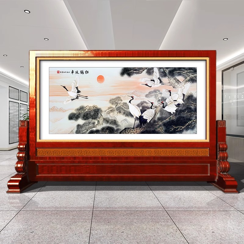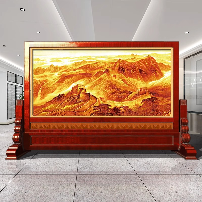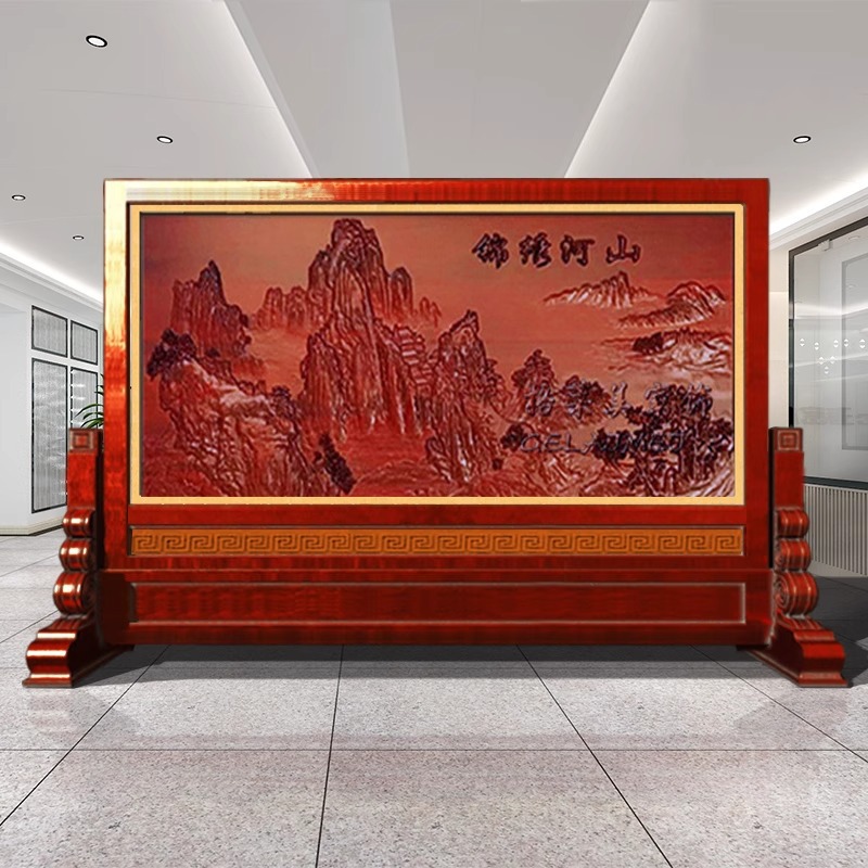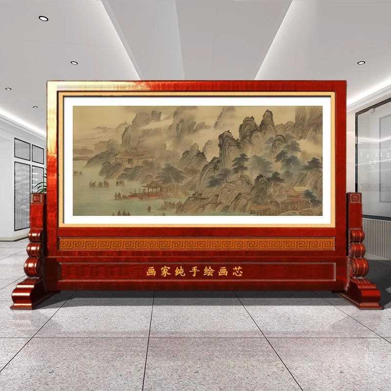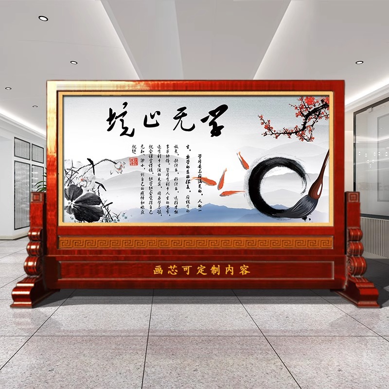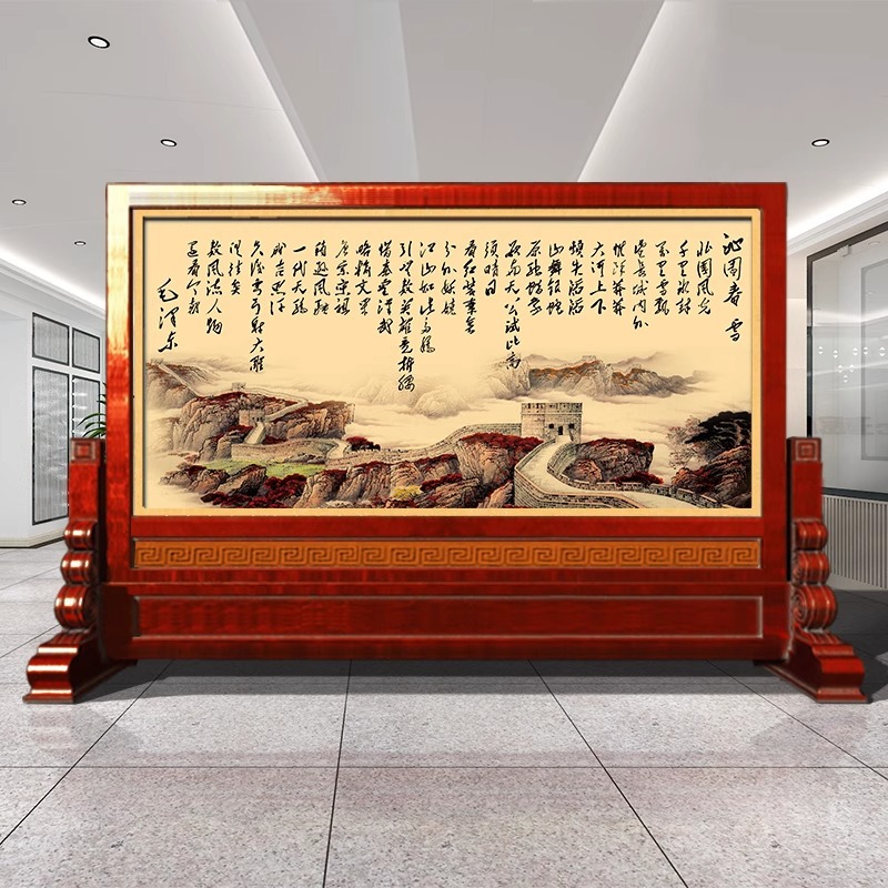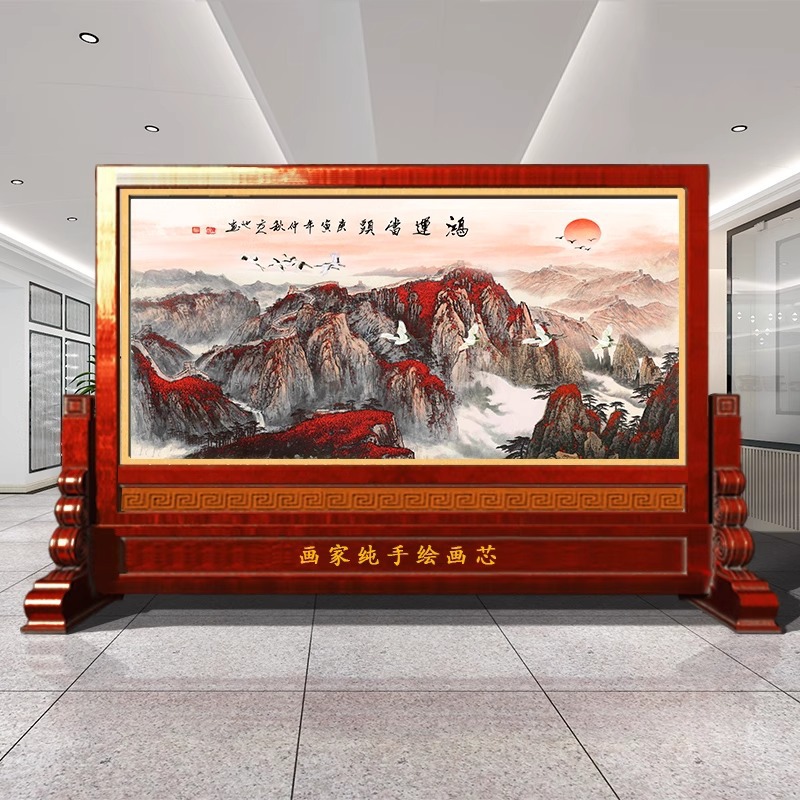 중국식 단단한 목재 거실 홀 입구 차단 스크린 회사 단위 사무실 입구 양면 파티션 Qinyuanchun