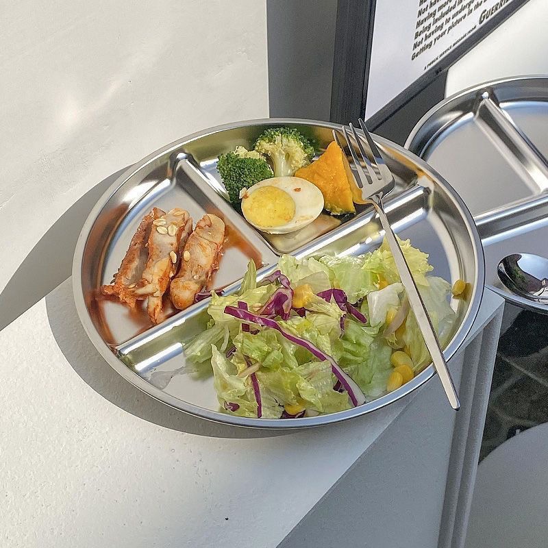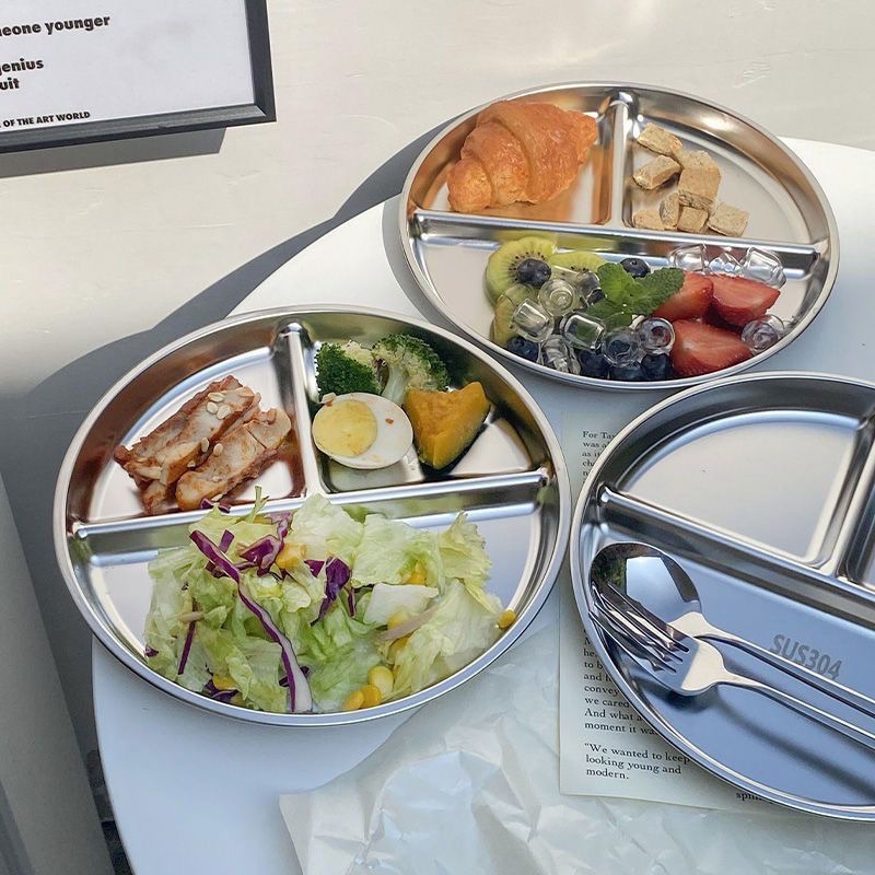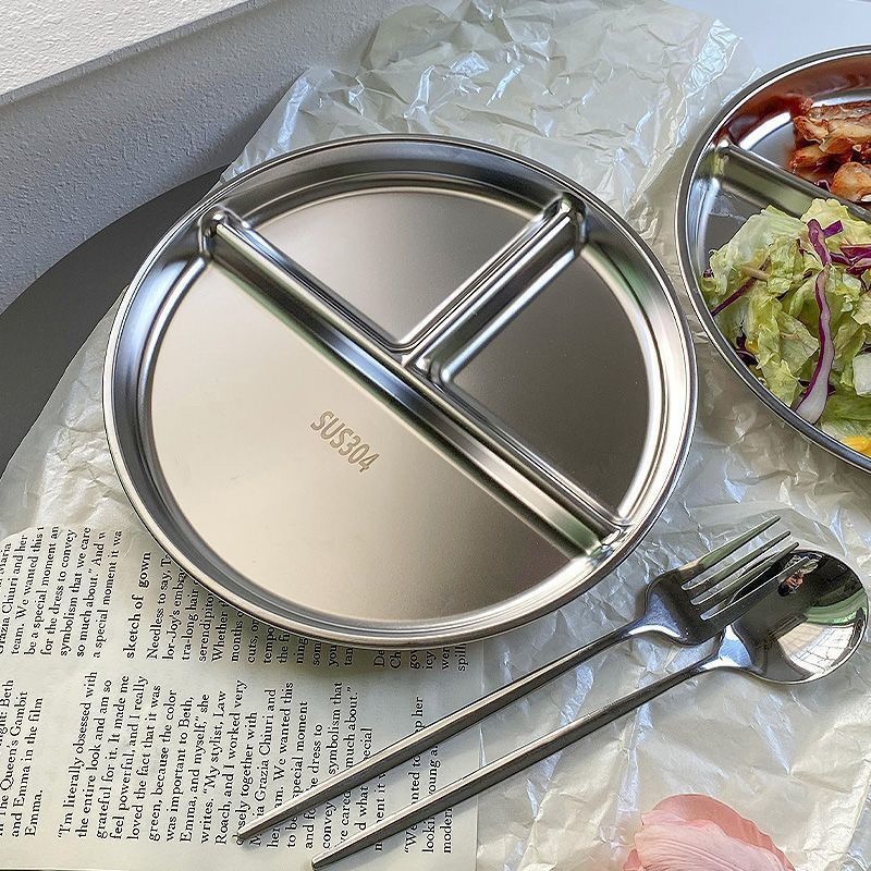 원형 스테인레스 스틸 분할 디너 플레이트, 정량 3칸 디스크, 성인용 지방 감량 디너 플레이트, 학생용 정량 디너 플레이트스토어 가기