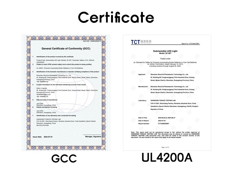 GCCUL 인증 LED 풀 라이트 다채로운 원격 제어 소형 잠수정 램프 IP68 방수 조경 손잡이 수중 램프