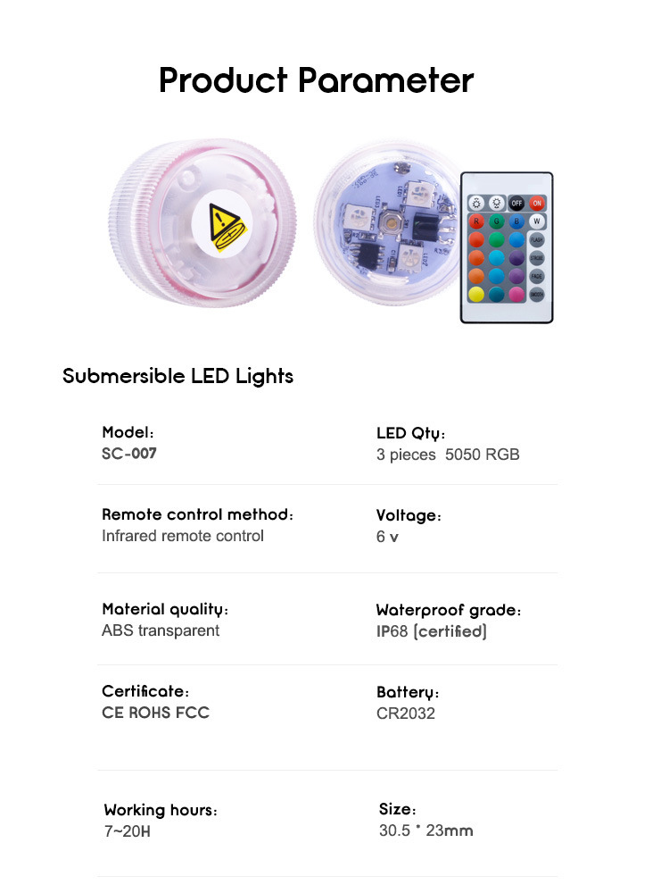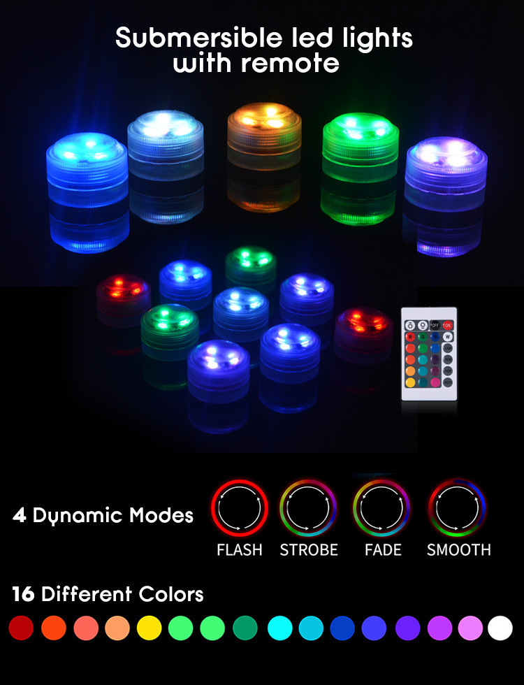GCCUL 인증 LED 풀 라이트 다채로운 원격 제어 소형 잠수정 램프 IP68 방수 조경 손잡이 수중 램프스토어 가기